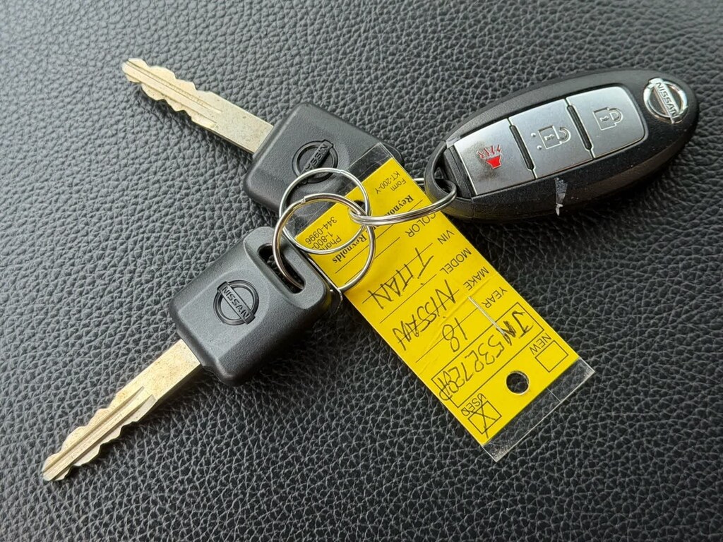 SV Convenience Package (4-Pin/7-Pin Wiring Harness Connector (Rear Bumper), Auto-Dimming Rear-View Mirror, Automatic On/Off Headlights, Blind Spot Warning w/Rear Cross Traffic Alert, Chrome Interior Door Locks, Convex Spotter Mirror, Dual Zone Automatic HVAC, Front & Rear Parking Sensors, Heated Front Captains Chairs, Intelligent Key System, Leather-Wrapped Steering Wheel, Painted Rear Bumper, Power Sliding Rear Window w/Defogger, Radio: Nissan Navigation System w/Voice Guidance, Rain Sensing Wipers, Rear Air Conditioning Vents, Receiver Hitch, Siri Eyes Free, and Universal Garage Door Opener), SV Tow Package (Manually Extending Heated Tow Mirrors w/Puddle Lamp and Trailer Brake Controller), SV Utility Package (110V Outlet in Bed, 2nd Row Flat Floor Storage Box, LED Under Rail Bed Lighting, Spray-On Bedliner, Tailgate Area Illumination, and Utilitrack System w/4 Tie-Down Cleats), 4WD, 2.937 Axle Ratio, 4-Wheel Disc Brakes, 6 Speakers, ABS brakes, Activation Disclaimer, Air Conditioning, Alloy wheels, AM/FM radio: SiriusXM, Brake assist, Bumpers: chrome, Carpeted Floor Mats w/U01, CD player, Cloth Seat Trim, Driver door bin, Driver vanity mirror, Dual front impact airbags, Dual front side impact airbags, Electronic Stability Control, Front anti-roll bar, Front Center Armrest w/Storage, Front Manual Split Bench Seat (40/20/40), Front reading lights, Front wheel independent suspension, Heated door mirrors, Illuminated entry, Leather Seat Trim, Low tire pressure warning, Occupant sensing airbag, Outside temperature display, Overhead airbag, Overhead console, Panic alarm, Passenger door bin, Passenger vanity mirror, Power door mirrors, Power steering, Power windows, Radio data system, Radio: NissanConnect AM/FM w/SiriusXM, Rear anti-roll bar, Rear seat center armrest, Rear Seat Storage Compartment w/Luggage Floor, Rear step bumper, Rear window defroster, Remote keyless entry, Security system, Speed control, Speed-sensing steering, Speed-Sensitive Wipers, Splash Guards, Split folding rear seat, Steering wheel mounted audio controls, Tachometer, Telescoping steering wheel, Tilt steering wheel, Traction control, Trip computer, Turn signal indicator mirrors, Variably intermittent wipers, Voltmeter, and Wheels: 18 x 8 Silver Painted Alloy. CARFAX One-Owner. Cayenne Red 2018 Nissan Titan SV 4WD 7-Speed Automatic 5.6L V8 4WD. Clean CARFAX.