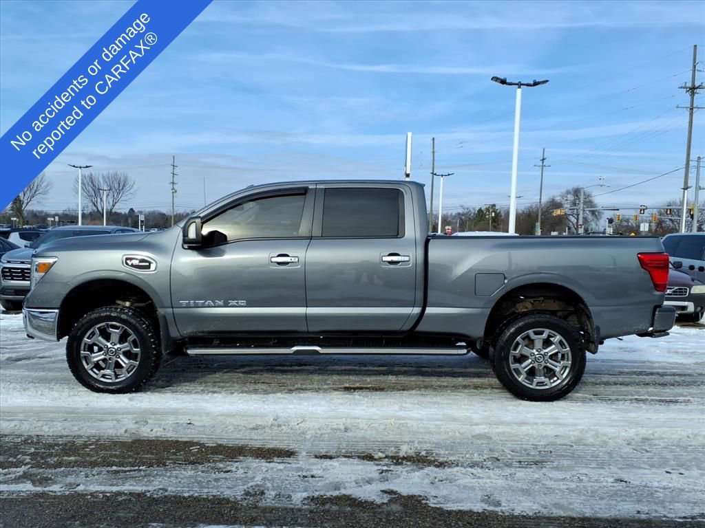 Solid to the core, our Accident Free 2018 Nissan Titan XD SV Crew Cab 4X4 flexes some serious muscle in Gun Metallic! Powered by a 5.6 Liter V8 that generates 390hp paired with an innovative 7 Speed Automatic transmission. This Four Wheel Drive truck rewards you with a jaw-dropping towing, payload capacity, and nearly 21mpg on the highway. It's impossible to ignore the rugged good looks of our Titan XD SV, which packs every tool you need to get hard jobs done easily and is built with a high-strength steel frame. It takes care of you with tough wheels, front tow hooks, an integrated gooseneck hitch, and a dampened opening tailgate with closure assist.