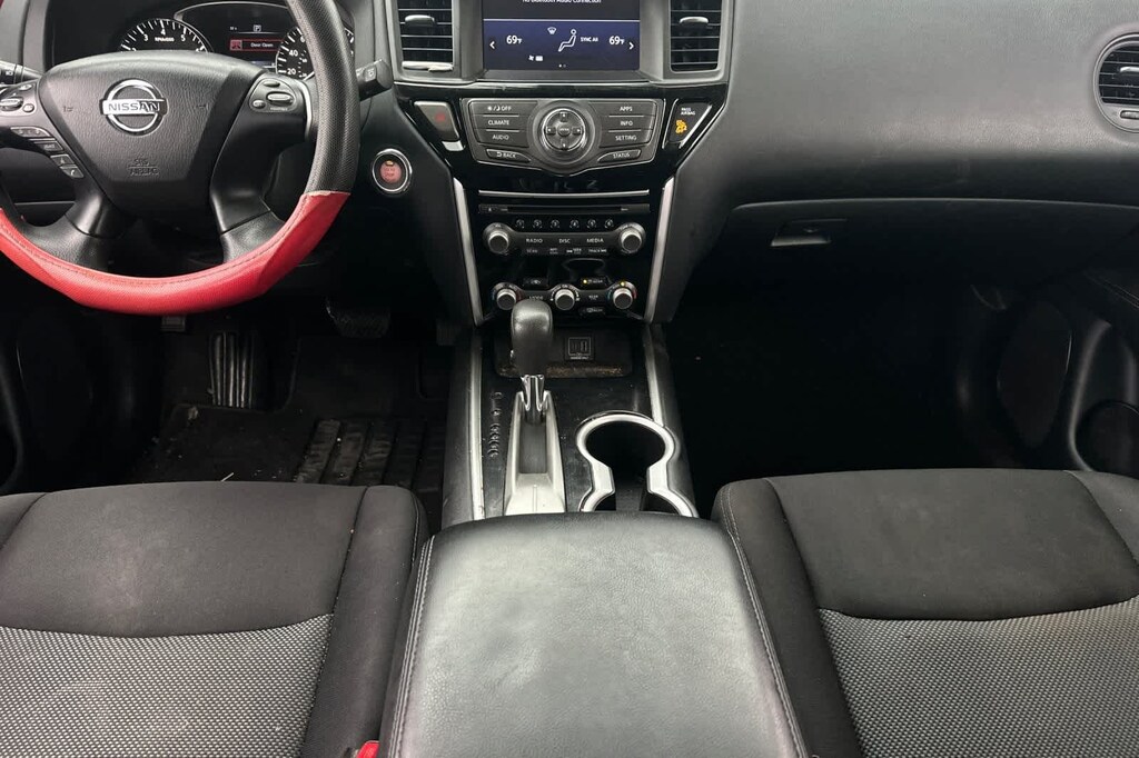 This Pathfinder S is finished in the Magnetic Black Pearl exterior paint and Charcoal Cloth interior.