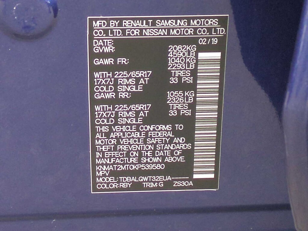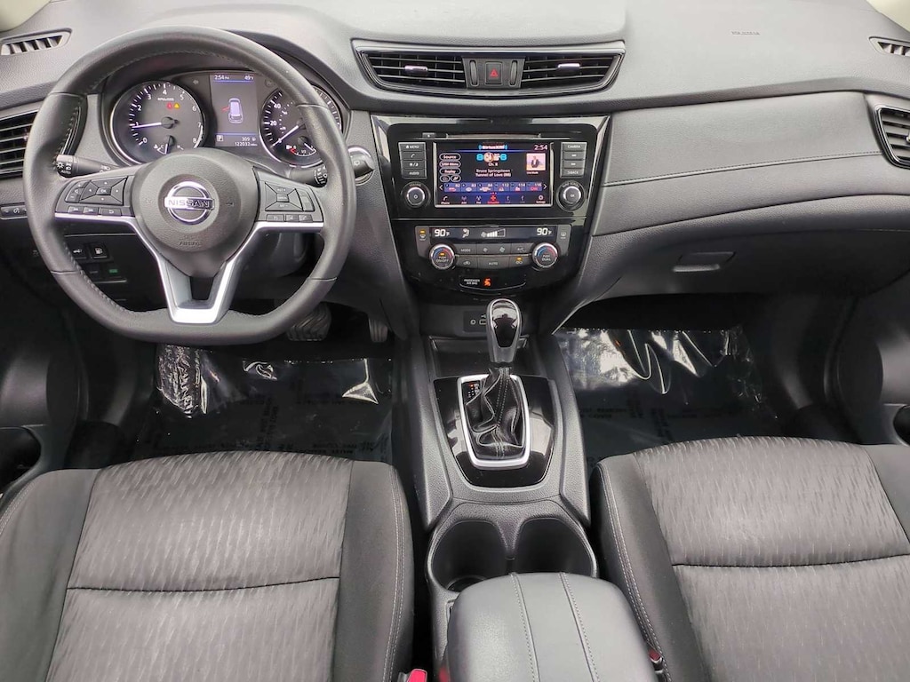 17 Aluminum Alloy Wheels, 4-Wheel Disc Brakes, 6 Speakers, 6.386 Axle Ratio, ABS brakes, Air Conditioning, Alloy wheels, AM/FM radio: SiriusXM, Anti-whiplash front head restraints, Auto High-beam Headlights, Automatic temperature control, Black Splash Guards (Set of 4), Blind Spot Warning, Brake assist, Bumpers: body-color, CD player, Chrome Rear Bumper Protector, Cloth Seat Trim, Delay-off headlights, Driver door bin, Driver vanity mirror, Dual front impact airbags, Dual front side impact airbags, Electronic Stability Control, First Aid Kit, Floor Mats & 2-PC Cargo Area Protector, Four wheel independent suspension, Front anti-roll bar, Front Bucket Seats, Front Center Armrest w/Storage, Front dual zone A/C, Front reading lights, Fully automatic headlights, Heated door mirrors, Heated Front Bucket Seats, Heated front seats, Illuminated entry, Leather Shift Knob, Low tire pressure warning, NissanConnect featuring Apple CarPlay and Android Auto, Occupant sensing airbag, Outside temperature display, Overhead airbag, Overhead console, Panic alarm, Passenger door bin, Passenger vanity mirror, Power door mirrors, Power driver seat, Power Liftgate, Power steering, Power windows, Radio data system, Radio: AM/FM/CD/AUX, Radio: AM/FM/CD/AUX NissanConnect w/Navigation, Rear anti-roll bar, Rear Parking Sensors, Rear seat center armrest, Rear USB Ports, Rear window defroster, Rear window wiper, Remote keyless entry, Roof rack: rails only, Security system, Speed control, Speed-sensing steering, Split folding rear seat, Spoiler, Steering wheel mounted audio controls, Tachometer, Telescoping steering wheel, Tilt steering wheel, Traction control, Trip computer, Turn signal indicator mirrors, and Variably intermittent wipers.