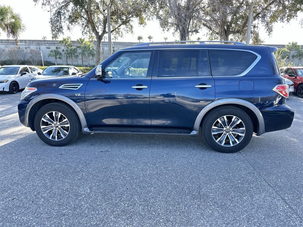Armada SL, 4D Sport Utility, 5.6L V8, 7-Speed Automatic, RWD, Hermosa Blue Pearl, Black Leather.