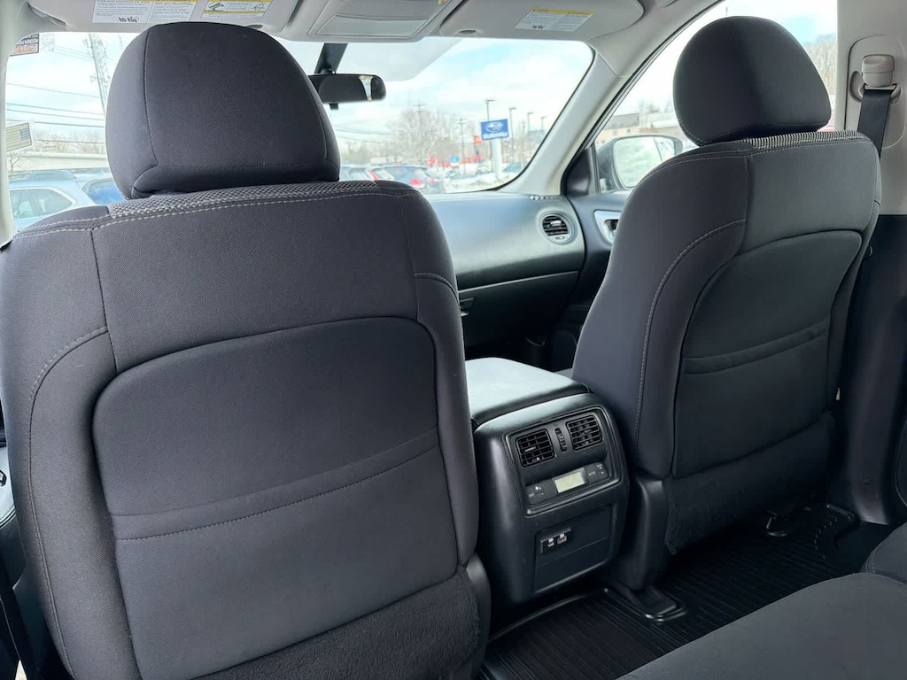 Indulge in the comfort of the Pathfinders cloth seating surfaces, which feature a drivers seat with adjustable lumbar support and a reclining third-row bench. Stay connected with the NissanConnect infotainment system, complete with a CD player, AM/FM radio, and Bluetooth connectivity.