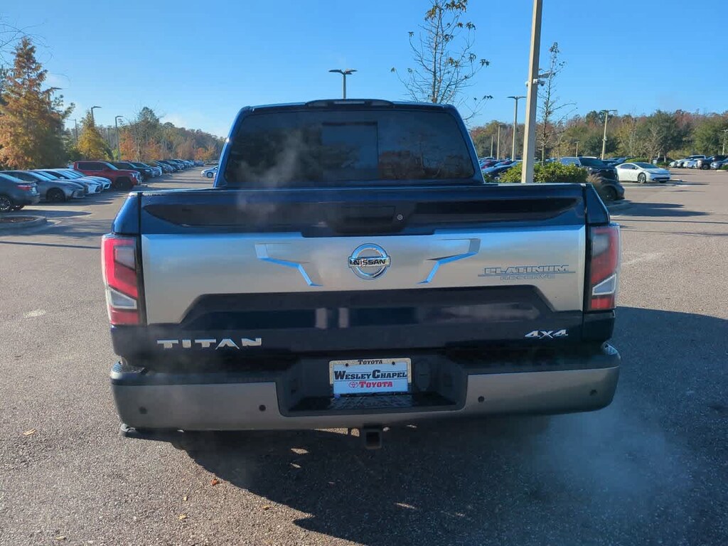 Recent Arrival! Certified by Carfax - NO ACCIDENTS, **4WD/4x4**, **Custom**, 4WD, 5.5 TITAN Box, Dual Panel Panoramic Moonroof w/Tilt & Slide, Moonroof Package, Navigation system: NissanConnect Navigation, Platinum Reserve Utility Bed Package, Platinum Utility Package, Protection Package 2, Rear Bumper Step, Rear Utility Bed Step, TITAN Box, 12 Speakers, 3.692 Axle Ratio, 4-Wheel Disc Brakes, ABS brakes, Air Conditioning, Alloy wheels, AM/FM radio: SiriusXM, Auto High-beam Headlights, Auto tilt-away steering wheel, Auto-dimming door mirrors, Auto-dimming Rear-View mirror, Automatic temperature control, Blind Spot Warning, Brake assist, Compass, Delay-off headlights, Door Sill Kick Plates, Driver door bin, Driver vanity mirror, Dual front impact airbags, Dual front side impact airbags, Electronic Stability Control, Emergency communication system: NissanConnect Services, Exterior Parking Camera Rear, Front anti-roll bar, Front Bucket Seats, Front Center Armrest, Front dual zone A/C, Front fog lights, Front reading lights, Front wheel independent suspension, Fully automatic headlights, Garage door transmitter: HomeLink, Genuine wood dashboard insert, Genuine wood door panel insert, Heated & Cooled Front Captains Seats, Heated door mirrors, Heated front seats, Heated rear seats, Heated steering wheel, Illuminated entry, Knee airbag, Leather Shift Knob, Leather steering wheel, Lighted Running Boards w/Chrome, Low tire pressure warning, Memory seat, NissanConnect featuring Apple CarPlay and Android Auto, NissanConnect Services Powered By SiriusXM, Occupant sensing airbag, Outside temperature display, Overhead airbag, Overhead console, Panic alarm, Passenger door bin, Passenger vanity mirror, Platinum Reserve Mud Flaps, Power door mirrors, Power driver seat, Power passenger seat, Power steering, Power windows, Premium Leather-Appointed Seat Trim, Radio data system, Radio: NissanConnect w/Navigation, Rain sensing wipers, Rear anti-roll bar, Rear seat center armrest, Rear step bumper, Rear window defroster, Remote keyless entry, Security system, Speed control, Speed-sensing steering, Speed-Sensitive Wipers, Split folding rear seat, Steering wheel memory, Steering wheel mounted audio controls, Tachometer, Telescoping steering wheel, Tilt steering wheel, Traction control, Trip computer, Turn signal indicator mirrors, Variably intermittent wipers, Ventilated front seats, Voltmeter, Wheels: 20 x 8 Dark Painted & Machined Clad, 4WD, 5.5 TITAN Box, Dual Panel Panoramic Moonroof w/Tilt & Slide, Moonroof Package, Navigation system: NissanConnect Navigation, Platinum Reserve Utility Bed Package, Platinum Utility Package, Protection Package 2, Rear Bumper Step, Rear Utility Bed Step, TITAN Box. WE ARE OPEN FOR ALL YOUR SALES AND SERVICE NEEDS! COMPLETE ONLINE BUYING EXPERIENCE AVAILABLE!