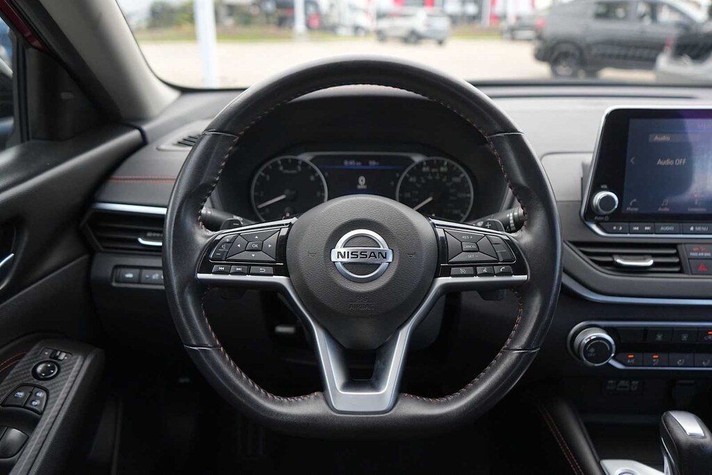 LOCAL TRADE, BLUETOOTH, CLEAN CARFAX, NON-SMOKER, CARFAX ONE OWNER, Service Records Available!, ** LEATHER SEATS, ** HEATED SEATS, ** REARVIEW CAMERA, ** NAVIGATION SYSTEM, ** KEYLESS ENTRY, ** KEYLESS START, ** PREMIUM WHEELS, ** PREMIUM SOUND SYSTEM, ** LANE DEPARTURE WARNING, ** SATELLITE RADIO, ** STEERING WHEEL CONTROLS, ** ALARM SYSTEM, ** WIFI HOTSPOT, ** AUXILIARY AUDIO INPUT, ** LOCAL TRADE-IN, ** LOCALLY OWNED AND SERVICED, Altima 2.5 SR, 4D Sedan, 2.5L 4-Cylinder DOHC 16V, CVT with Xtronic, FWD, Scarlet Ember Tintcoat, Sport Cloth, 19 Alloy Wheels, 4-Wheel Disc Brakes, 6 Speakers, ABS brakes, Air Conditioning, Alloy wheels, AM/FM radio: SiriusXM, Auto High-beam Headlights, Blind Spot Warning, Brake assist, Bumpers: body-color, Delay-off headlights, Driver door bin, Driver vanity mirror, Dual front impact airbags, Dual front side impact airbags, Electronic Stability Control, Four wheel independent suspension, Front anti-roll bar, Front Bucket Seats, Front Center Armrest, Front reading lights, Front Sport Bucket Seats, Fully automatic headlights, Illuminated entry, Knee airbag, Leather Shift Knob, Low tire pressure warning, NissanConnect featuring Apple CarPlay and Android Auto, Occupant sensing airbag, Outside temperature display, Overhead airbag, Overhead console, Panic alarm, Passenger door bin, Passenger vanity mirror, Power door mirrors, Power driver seat, Power steering, Power windows, Radio data system, Radio: AM/FM Audio System, Rear anti-roll bar, Rear Parking Sensors, Rear reading lights, Rear seat center armrest, Rear side impact airbag, Rear window defroster, Remote keyless entry, Security system, Speed control, Speed-sensing steering, Speed-Sensitive Wipers, Split folding rear seat, Sport Seat Trim, Sport steering wheel, Steering wheel mounted audio controls, Tachometer, Telescoping steering wheel, Tilt steering wheel, Traction control, Trip computer, Variably intermittent wipers, Altima 2.5 SR, 4D Sedan, 2.5L 4-Cylinder DOHC 16V, CVT with Xtronic, FWD, Scarlet Ember Tintcoat, Sport Cloth.