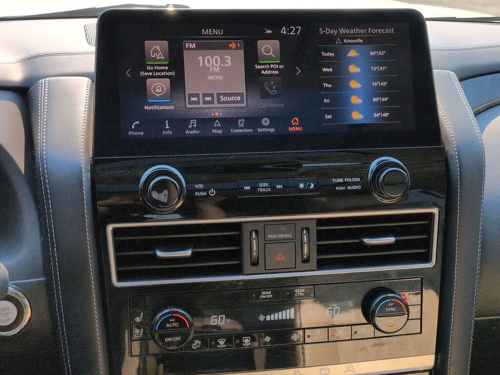 Safety is also a top priority, with features like Nissans Intelligent Around View Monitor, Blind Spot Warning, and Rear Automatic Braking to help you navigate with confidence. This Armada Platinum is equipped with a wealth of advanced driver-assistance technologies to provide you and your loved ones with the ultimate peace of mind.