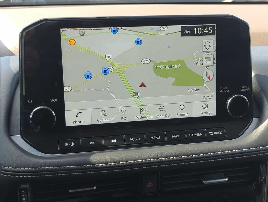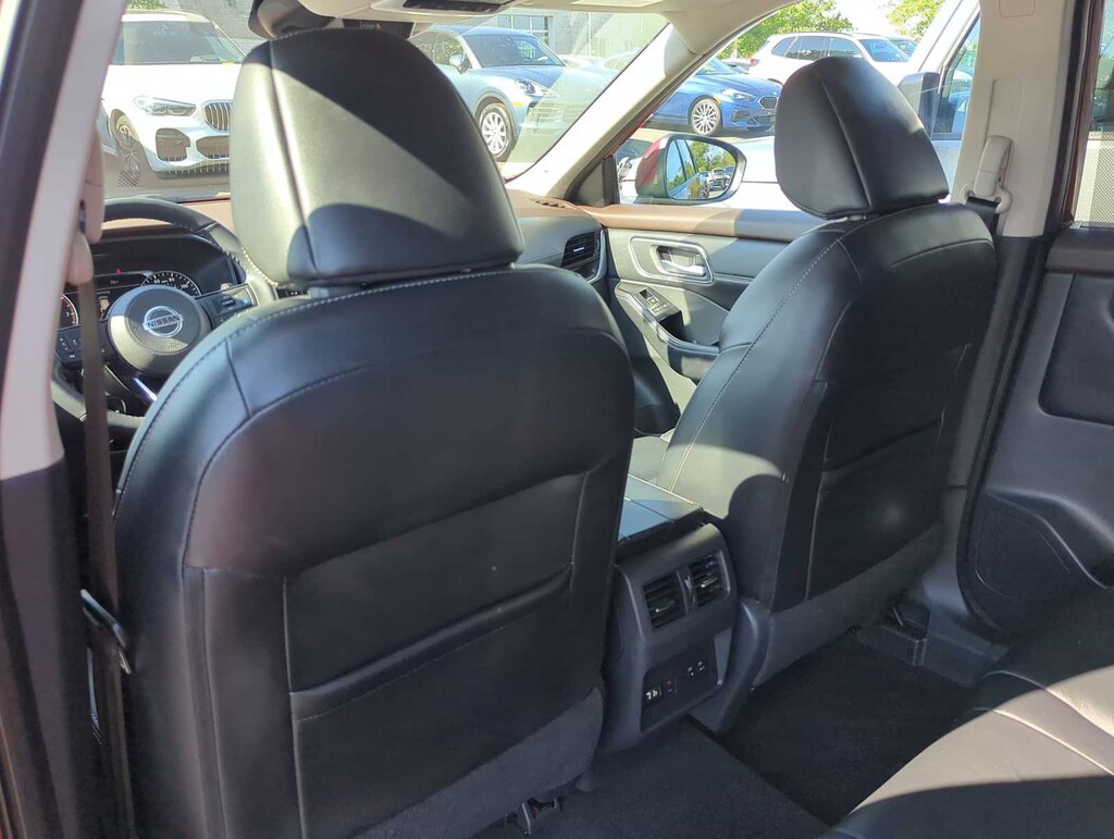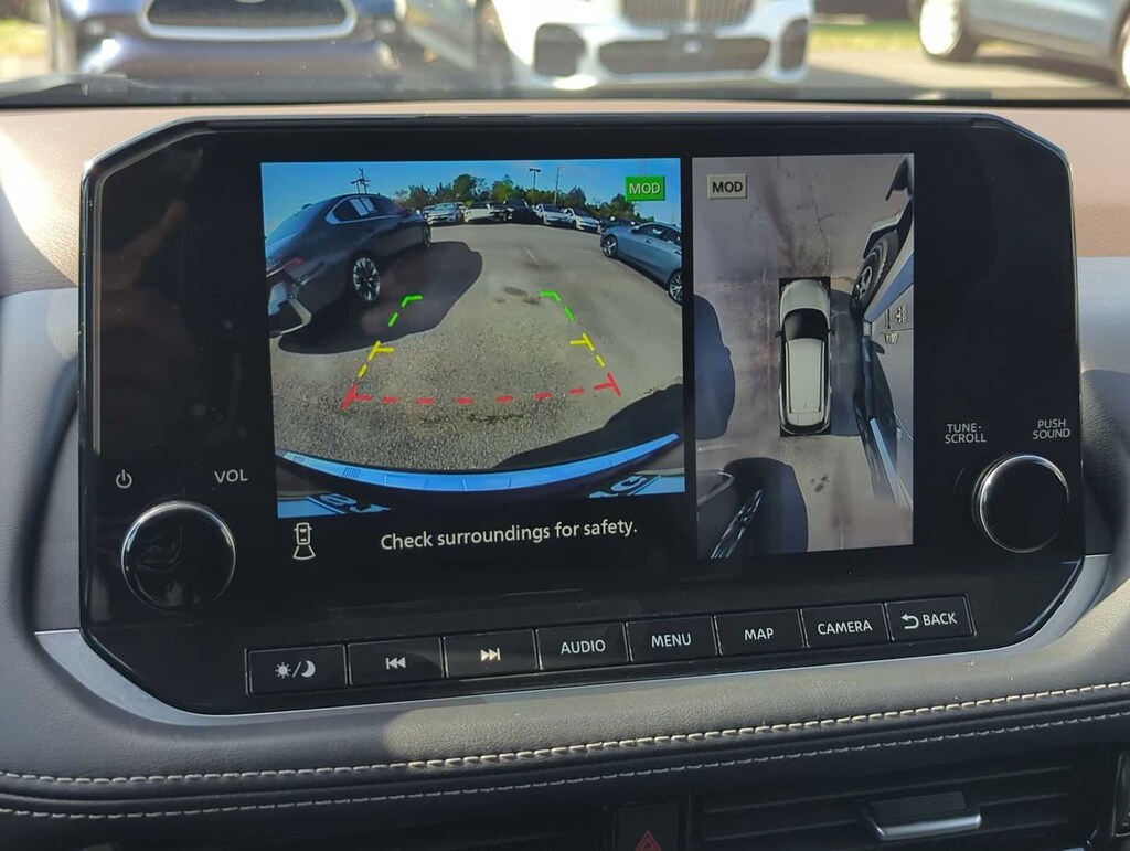 Premium Package (Bose Premium Audio System, Front & Rear Sonar, Nissan Door To Door Navigation, ProPILOT Assist +, and SiriusXM Traffic), 19 Aluminum Alloy Wheels, 4-Wheel Disc Brakes, 5.604 Axle Ratio, 6 Speakers, ABS brakes, Air Conditioning, Alloy wheels, AM/FM Radio, AM/FM radio, Auto High-beam Headlights, Auto-dimming Rear-View mirror, Automatic temperature control, Black Splash Guards (Set of 4), Brake assist, Bumpers: body-color, Chrome Rear Bumper Protector, Delay-off headlights, Driver door bin, Driver vanity mirror, Dual front impact airbags, Dual front side impact airbags, Electronic Stability Control, Emergency communication system: NissanConnect Services, Exterior Parking Camera Rear, First Aid Kit, Floor Mats w/2-Piece Cargo Area Protector, Four wheel independent suspension, Front anti-roll bar, Front Bucket Seats, Front Center Armrest, Front dual zone A/C, Front fog lights, Front reading lights, Fully automatic headlights, Heated door mirrors, Heated Front Bucket Seats, Heated front seats, Heated steering wheel, Illuminated entry, Knee airbag, Leather steering wheel, Leather-Appointed Seat Trim, Low tire pressure warning, Memory seat, NissanConnect featuring Apple CarPlay and Android Auto, Occupant sensing airbag, Outside temperature display, Overhead airbag, Overhead console, Panic alarm, Passenger door bin, Passenger vanity mirror, Power door mirrors, Power driver seat, Power Liftgate, Power moonroof, Power passenger seat, Power steering, Power windows, Radio data system, Rear air conditioning, Rear anti-roll bar, Rear Parking Sensors, Rear seat center armrest, Rear side impact airbag, Rear window defroster, Rear window wiper, Remote keyless entry, Roof rack: rails only, Security system, Speed control, Speed-Sensitive Wipers, Split folding rear seat, Spoiler, Steering wheel mounted audio controls, Tachometer, Telescoping steering wheel, Tilt steering wheel, Traction control, Trip computer, Turn signal indicator mirrors, and Variably intermittent wipers.