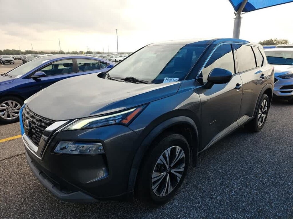 CARFAX One-Owner. Clean CARFAX. Gun Metallic 2021 Nissan Rogue SV AWD CVT with Xtronic 2.5L I4 DOHC 16V AWD, 18 Aluminum Alloy Wheels, 4-Wheel Disc Brakes, 5.604 Axle Ratio, 6 Speakers, ABS brakes, Air Conditioning, Alloy wheels, AM/FM Radio, AM/FM radio, Auto High-beam Headlights, Automatic temperature control, Black Splash Guards (Set of 4), Brake assist, Bumpers: body-color, Chrome Rear Bumper Protector, Cloth Seat Trim, Delay-off headlights, Driver door bin, Driver vanity mirror, Dual front impact airbags, Dual front side impact airbags, Electronic Stability Control, Emergency communication system: NissanConnect Services, First Aid Kit, Floor Mats w/1-Piece Cargo Area Protector, Four wheel independent suspension, Front anti-roll bar, Front Bucket Seats, Front Center Armrest, Front dual zone A/C, Front reading lights, Fully automatic headlights, Heated door mirrors, Illuminated entry, Knee airbag, Low tire pressure warning, NissanConnect featuring Apple CarPlay and Android Auto, Occupant sensing airbag, Outside temperature display, Overhead airbag, Overhead console, Panic alarm, Passenger door bin, Passenger vanity mirror, Power door mirrors, Power driver seat, Power steering, Power windows, Radio data system, Rear anti-roll bar, Rear Parking Sensors, Rear seat center armrest, Rear side impact airbag, Rear window defroster, Rear window wiper, Remote keyless entry, Security system, Speed control, Speed-Sensitive Wipers, Split folding rear seat, Spoiler, Steering wheel mounted audio controls, Tachometer, Telescoping steering wheel, Tilt steering wheel, Traction control, Trip computer, Turn signal indicator mirrors, Variably intermittent wipers, AWD.