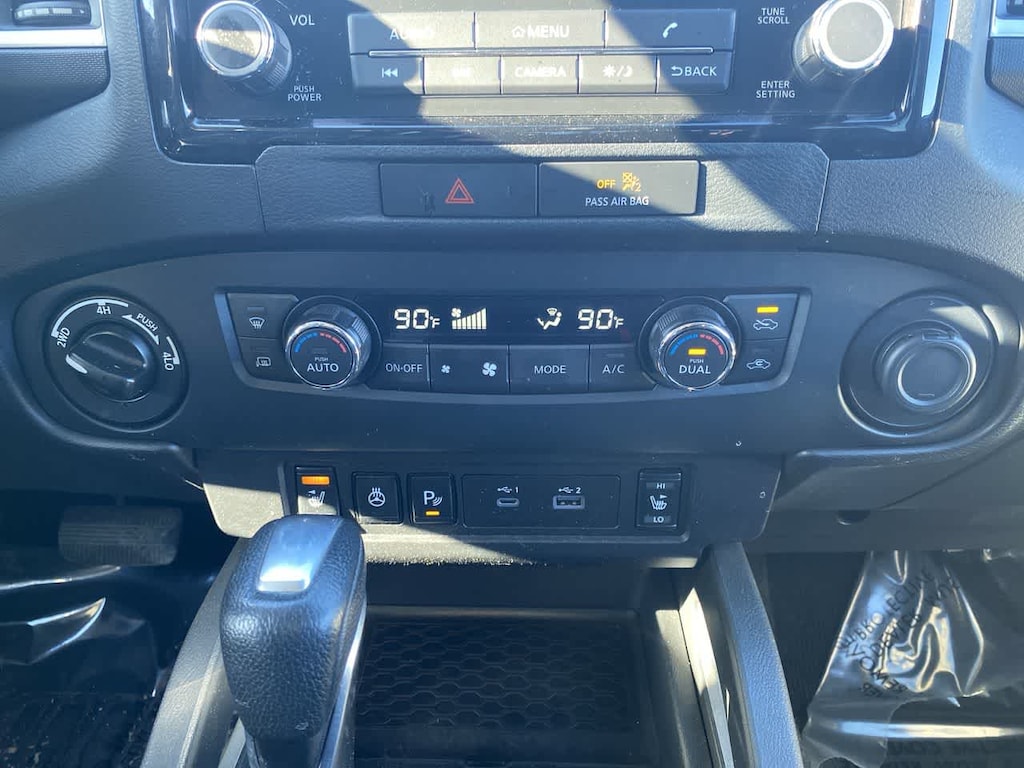 SV COMFORT & CONVENIENCE PACKAGE Bed Under-Rail Lighting, Remote Engine Starter, 120V Power Outlet in Bed, Heated Front Seats, Utili-Track System, 4 adjustable tie-down cleats, Spray-In Bedliner, Trailer Hitch w/Wiring Harness, VPC installed accessory, Overhead Console Storage (Sunglass Holder), HVAC - Dual-Zone Front Auto A/C, I-Key w/Request Switches on O/S Handles, Full function, Halogen Daytime Running Lights, Leather Shift Lever, Front Halogen Fog Lights, Sliding Rear Window, Heated Leather Steering Wheel, Heated Outside Mirrors, 120V Power Outlet in Rear Center Console, TECHNOLOGY PACKAGE Rear Sonar System, Rear Automatic Braking (RAB), High Beam Assist (HBA), Blind Spot Warning (BSW), Rear Cross Traffic Alert (RCTA), Intelligent Cruise Control (ICC), Lane Departure Warning (LDW). Nissan SV with Gun Metallic exterior and Charcoal interior features a V6 Cylinder Engine with 310 HP at 6400 RPM*.