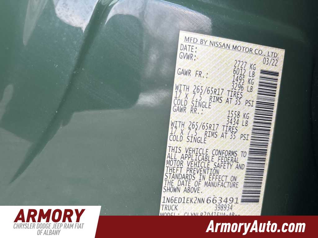 Clean CARFAX. Tactical Green Metallic 2022 Nissan Frontier SV 4WD 9-Speed Automatic 3.8L DI DOHC 24V V6