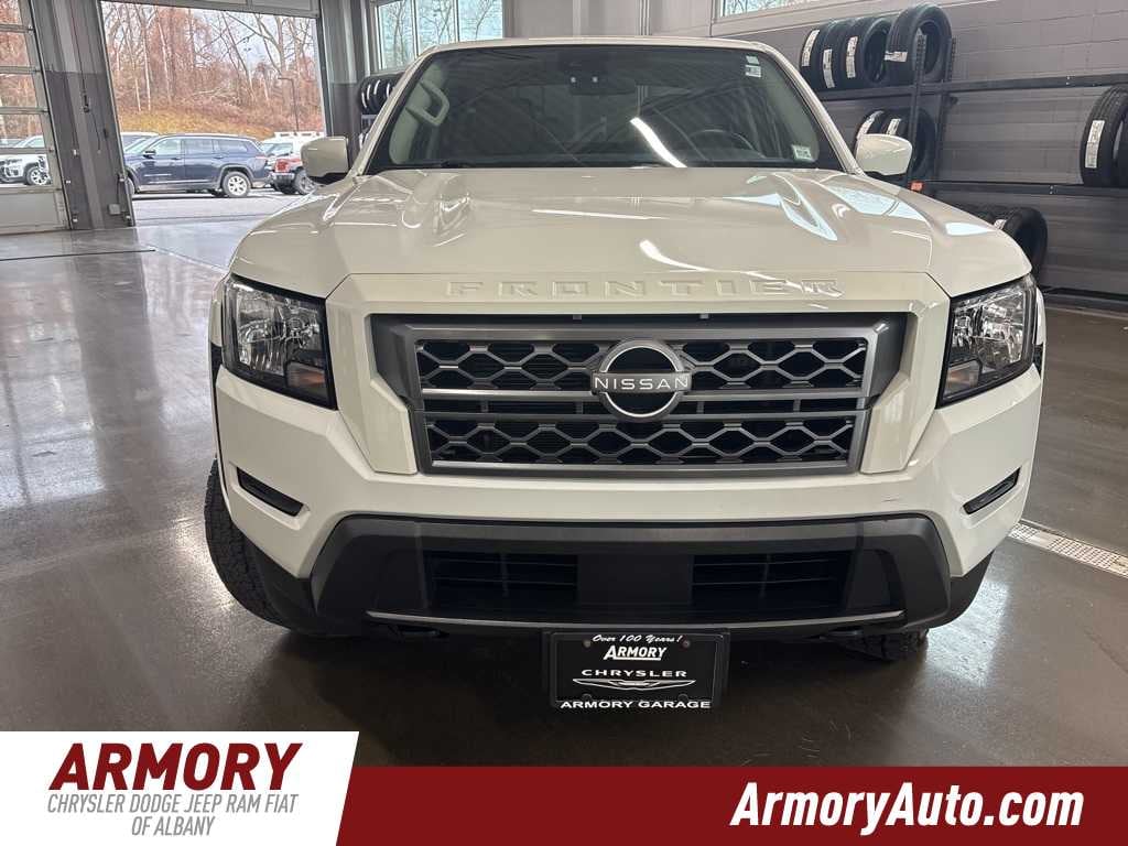 Glacier White 2022 Nissan Frontier SV 4WD 9-Speed Automatic 3.8L DI DOHC 24V V6 ABS brakes, Apple CarPlay/Android Auto, Blind Spot Warning, Brake assist, Dual front impact airbags, Dual front side impact airbags, Electronic Stability Control, Front anti-roll bar, Knee airbag, Lane Departure Warning System, Occupant sensing airbag, Overhead airbag, Rear anti-roll bar, Traction control.