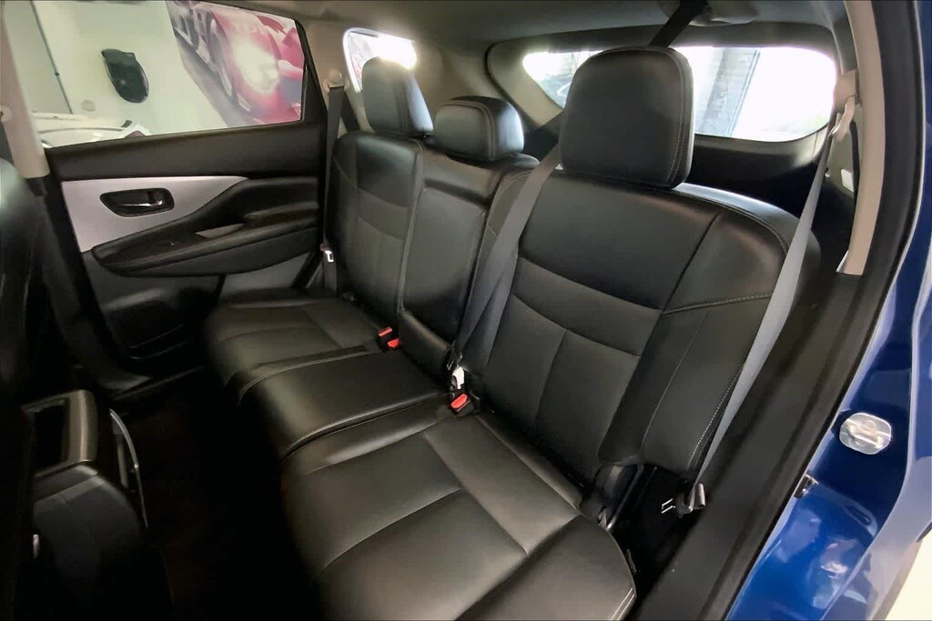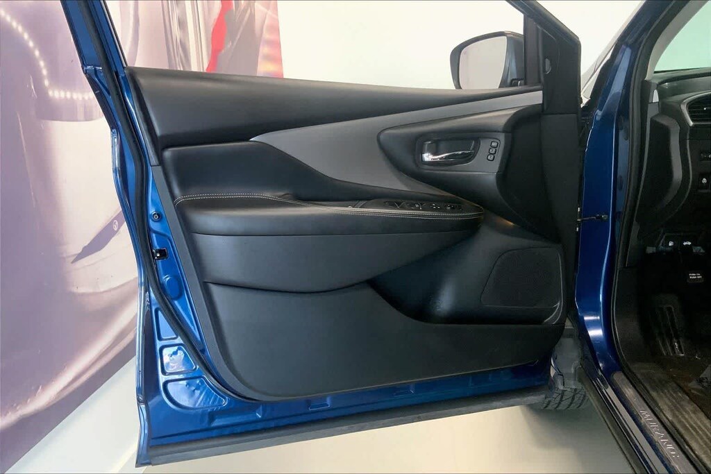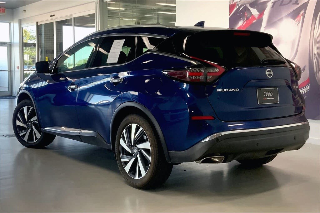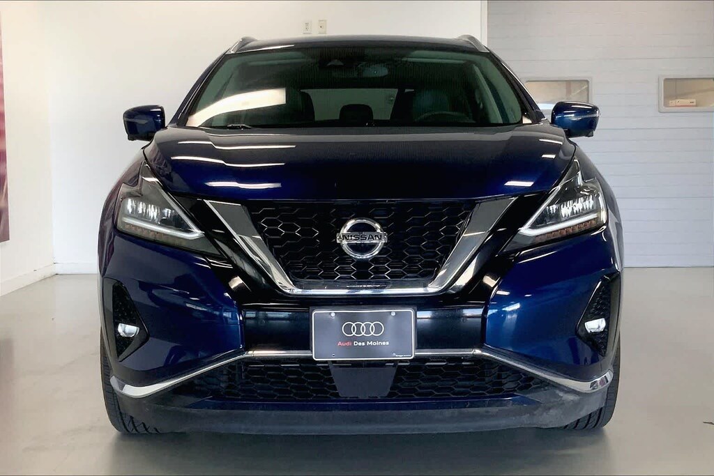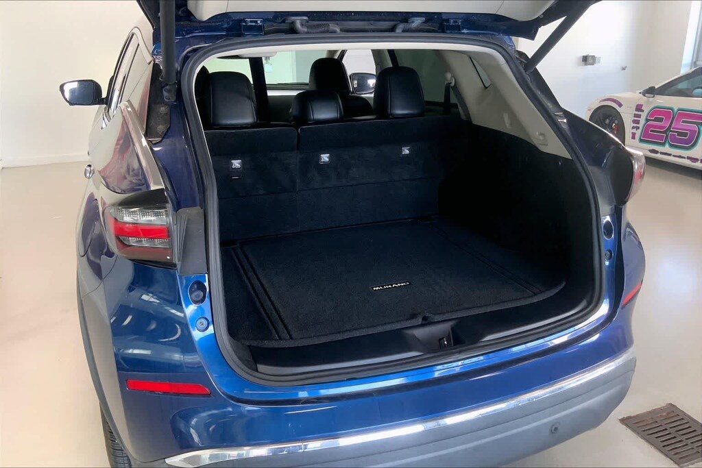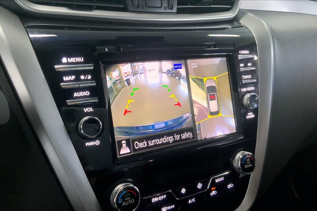 Murano SL is nicely equipped with Cargo Package (Cargo Area Protector, Cargo Net, First Aid Kit, and Retractable Cargo Cover), CVT with Xtronic, AWD, 11 Speakers, 4-Wheel Disc Brakes, 4.667 Axle Ratio, ABS brakes, Air Conditioning, Alloy wheels, AM/FM radio: SiriusXM, AM/FM/CD/MP3/WMA Audio System, Auto High-beam Headlights, Auto-dimming Rear-View mirror, Automatic temperature control, Blind Spot Warning, Brake assist, Bumpers: body-color, Carpeted Floor Mats & Carpeted Cargo Mat, CD player, Child-Seat-Sensing Airbag, Delay-off headlights, Driver door bin, Driver vanity mirror, Dual front impact airbags, Dual front side impact airbags, Electronic Stability Control, Exterior Parking Camera Rear, Four wheel independent suspension, Front anti-roll bar, Front Bucket Seats, Front Center Armrest, Front dual zone A/C, Front fog lights, Front reading lights, Fully automatic headlights, Garage door transmitter: HomeLink, Heated door mirrors, Heated Front Bucket Seats, Heated front seats, Heated rear seats, Heated steering wheel, Illuminated entry, Knee airbag, Leather-Appointed Seat Trim, Low tire pressure warning, Memory seat, Navigation system: NissanConnect Navigation, NissanConnect featuring Apple CarPlay and Android Auto, Occupant sensing airbag, Outside temperature display, Overhead airbag, Overhead console, Panic alarm, Passenger door bin, Passenger vanity mirror, Power door mirrors, Power driver seat, Power Liftgate, Power passenger seat, Power steering, Power windows, Premium audio system: Bose, Radio data system, Rear anti-roll bar, Rear reading lights, Rear seat center armrest, Rear side impact airbag, Rear window defroster, Rear window wiper, Remote keyless entry, Roof rack: rails only, Security system, Speed control, Speed-sensing steering, Speed-Sensitive Wipers, Split folding rear seat, Spoiler, Steering wheel mounted audio controls, Tachometer, Telescoping steering wheel, Tilt steering wheel, Traction control, Trip computer, Turn signal indicator mirrors, Variably intermittent wipers, and Wheels: 20 Machined Aluminum-Alloy.