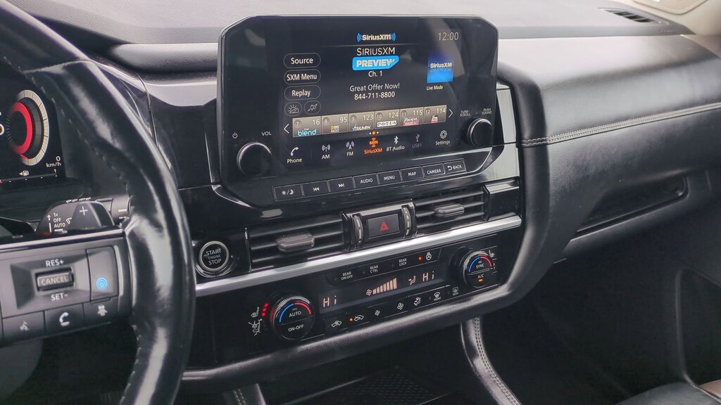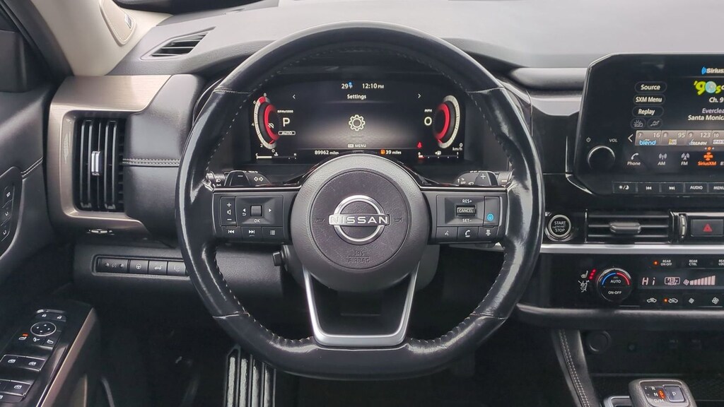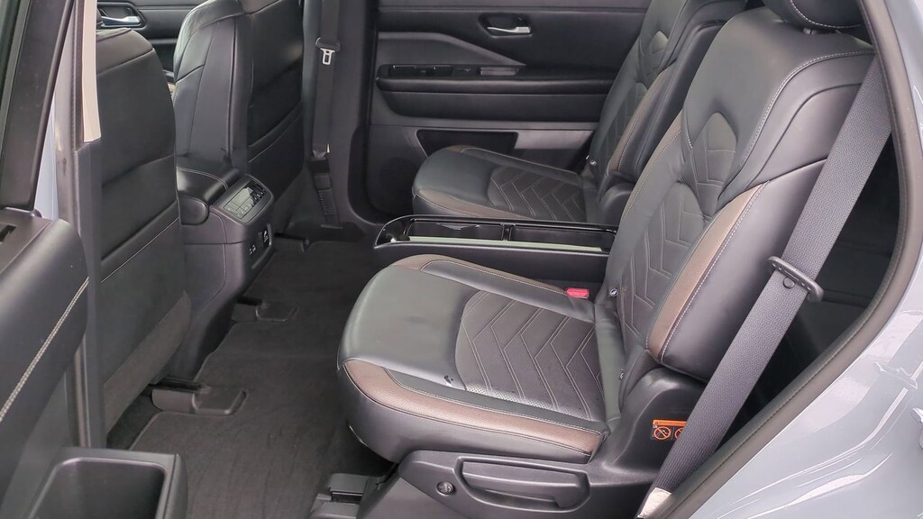 2022 Nissan Pathfinder Platinum Is nicely equipped with Cargo Package (Cargo Area Protector, Cargo Net, and First Aid Kit), 4WD, 13 Speakers, 3rd row seats: bench, 4-Wheel Disc Brakes, ABS brakes, Air Conditioning, Alloy wheels, AM/FM radio: SiriusXM, Auto High-beam Headlights, Auto tilt-away steering wheel, Auto-dimming Rear-View mirror, Automatic temperature control, Axle Ratio: TBD, Black Splash Guards (Set of 4), Bodyside moldings, Bose Premium Audio System, Brake assist, Bumpers: body-color, Captain's Chairs Carpeted Floor Mats (Set of 4), Climate Controlled Front Bucket Seats, Cross Bars, Delay-off headlights, Driver door bin, Driver vanity mirror, Dual front impact airbags, Dual front side impact airbags, Electronic Stability Control, Emergency communication system: NissanConnect Services, Exterior Parking Camera Rear, Four wheel independent suspension, Front anti-roll bar, Front Bucket Seats, Front Center Armrest, Front dual zone A/C, Front fog lights, Front reading lights, Fully automatic headlights, Garage door transmitter: HomeLink, Heads-Up Display, Heated door mirrors, Heated front seats, Heated rear seats, Heated steering wheel, Illuminated entry, Knee airbag, Leather steering wheel, Low tire pressure warning, Memory seat, Navigation system: NissanConnect Navigation, NissanConnect w/Navigation & Services, Occupant sensing airbag, Outside temperature display, Overhead airbag, Overhead console, Panic alarm, Passenger door bin, Passenger vanity mirror, Power door mirrors, Power driver seat, Power Liftgate, Power moonroof, Power passenger seat, Power steering, Power windows, Radio data system, Radio: AM/FM Audio System, Rain sensing wipers, Rear air conditioning, Rear anti-roll bar, Rear reading lights, Rear side impact airbag, Rear window defroster, Rear window wiper, Reclining 3rd row seat, Remote keyless entry, Security system, Semi-Aniline Leather Seating Surfaces, Speed control, Speed-sensing steering, Speed-Sensitive Wipers, Split folding rear seat, Spoiler, Steering wheel memory, Steering wheel mounted audio controls, Tachometer, Telescoping steering wheel, Tilt steering wheel, Traction control, Trip computer, Turn signal indicator mirrors, Variably intermittent wipers, Ventilated front seats, and Wheels: 20" Alloy w/Unique Finish.