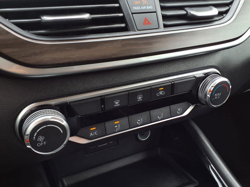CVT with Xtronic, 17 Machined Alloy Wheels, 4-Wheel Disc Brakes, 6 Speakers, ABS brakes, Air Conditioning, Alloy wheels, AM/FM radio: SiriusXM, Auto High-beam Headlights, Blind Spot Warning, Brake assist, Bumpers: body-color, Cloth Seat Trim, Delay-off headlights, Driver door bin, Driver vanity mirror, Dual front impact airbags, Dual front side impact airbags, Electronic Stability Control, Floor Mats/Trunk Mat/Hideaway Net, Four wheel independent suspension, Front anti-roll bar, Front Bucket Seats, Front Center Armrest, Front reading lights, Fully automatic headlights, Illuminated entry, Knee airbag, Low tire pressure warning, NissanConnect featuring Apple CarPlay and Android Auto, Occupant sensing airbag, Outside temperature display, Overhead airbag, Overhead console, Panic alarm, Passenger door bin, Passenger vanity mirror, Power door mirrors, Power driver seat, Power steering, Power windows, Radio data system, Radio: AM/FM Audio System, Rear anti-roll bar, Rear Parking Sensors, Rear reading lights, Rear seat center armrest, Rear side impact airbag, Rear window defroster, Remote keyless entry, Security system, Speed control, Speed-sensing steering, Speed-Sensitive Wipers, Split folding rear seat, Steering wheel mounted audio controls, Tachometer, Telescoping steering wheel, Tilt steering wheel, Traction control, Trip computer, Variably intermittent wipers, CVT with Xtronic.