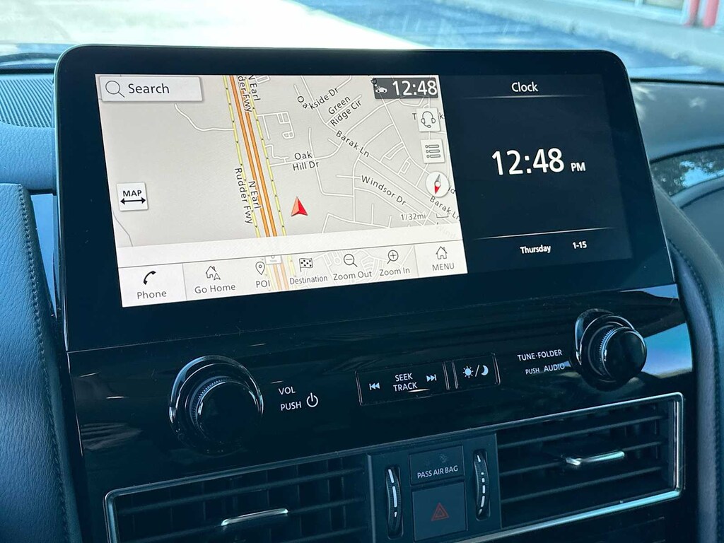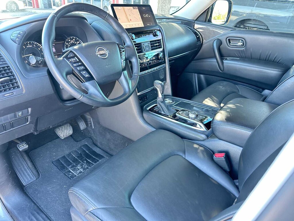Navigation, Heated Driver Seat, Back-Up Camera, Trailer Hitch, Remote Engine Start, Dual Zone A/C, Blind Spot Monitor, Cross-Traffic Alert. Rear Spoiler, MP3 Player, iPod/MP3 Input, Privacy Glass, Keyless Entry. Nissan SV with Gun Metallic exterior and Charcoal interior features a 8 Cylinder Engine with 400 HP at 5800 RPM*.
