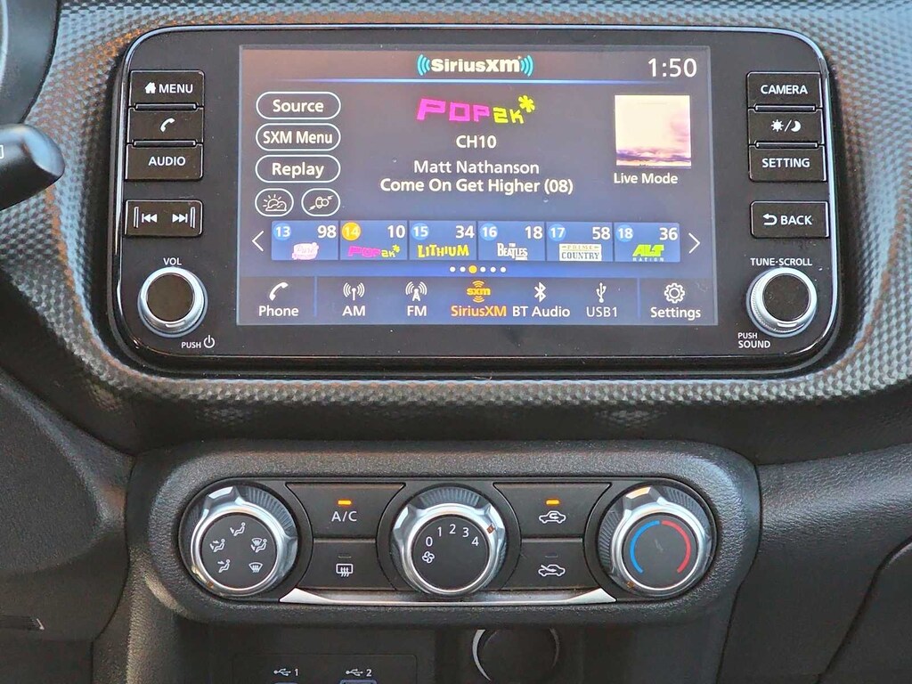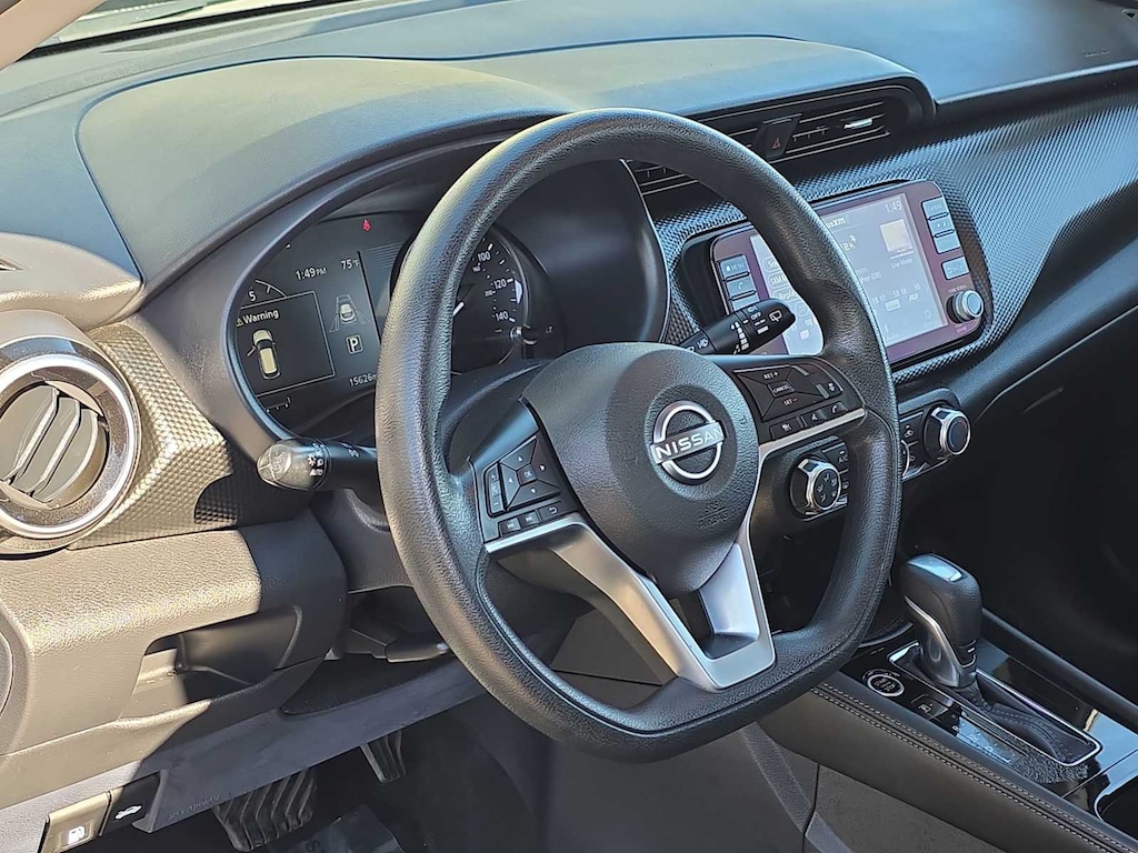 Our expressive SV cabin wins over drivers with its supportive cloth seats, multifunction steering wheel, air conditioning, remote start, front-center console, and Nissans Intelligent Key system with pushbutton ignition. A premium infotainment system puts connectivity in the spotlight with a 7-inch Advanced Drive-Assist Display, an 8-inch touchscreen, Android Autoî, Apple CarPlayî, Bluetoothî, and a six-speaker audio system with SiriusXM compatibility. For added practicality, our Kicks SUV comes with clever cargo solutions!