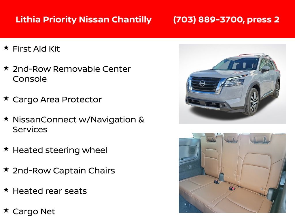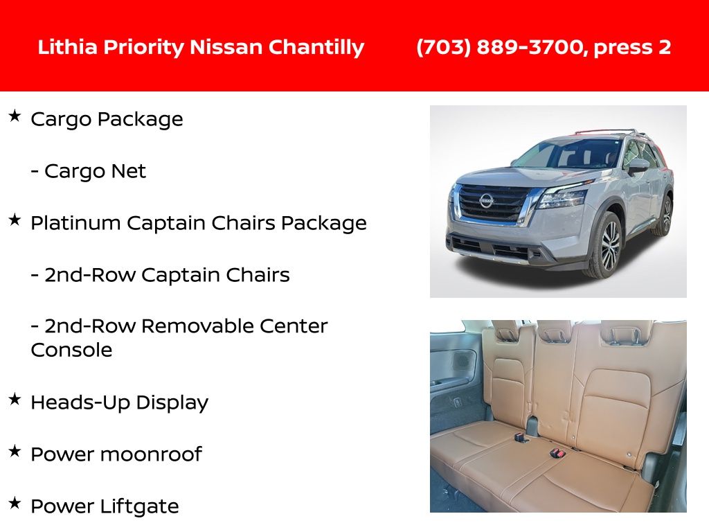 *GPS NAVIGATION w/ BACK UP CAMERA*, *LEATHER INTERIOR*, *HEATED FRONT SEATS*, *AWD*, 2nd-Row Captain Chairs, 2nd-Row Removable Center Console, Cargo Area Protector, Cargo Net, Cargo Package, Exterior Parking Camera Rear, First Aid Kit, Heads-Up Display, Heated rear seats, Heated steering wheel, Navigation system: NissanConnect Navigation, NissanConnect w/Navigation & Services, Platinum Captain Chairs Package, Power Liftgate, Power moonroof. 2023 Boulder Gray Pearl Nissan CARFAX One-Owner.