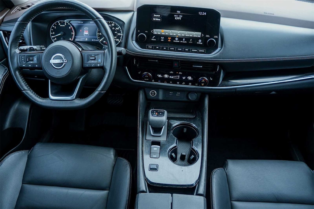 Rogue SL, 4D Sport Utility, 1.5L I3 Turbocharged DOHC 12V LEV3-ULEV50 201hp, CVT with Xtronic, FWD, Caspian Blue Metallic, Charcoal Leather, Bose Premium Audio System, Front, Side & Rear Sonar, Motion Activated Power Liftgate, ProPILOT Assist w/Navi-link, Radio: AM/FM NissanConnect w/Navigation, Rear Door Sunshades, SL Premium Package, Traffic Sign Recognition, Tri-Zone HVAC, 19 Aluminum Alloy Wheels, 4-Wheel Disc Brakes, 5.604 Axle Ratio, 6 Speakers, ABS brakes, Air Conditioning, Alloy wheels, AM/FM Radio, AM/FM radio: SiriusXM, Auto High-beam Headlights, Auto-dimming Rear-View mirror, Automatic temperature control, Black Splash Guards (Set of 4), Brake assist, Bumpers: body-color, Delay-off headlights, Driver door bin, Driver vanity mirror, Dual front impact airbags, Dual front side impact airbags, Electronic Stability Control, Emergency communication system: NissanConnect Services, Four wheel independent suspension, Front anti-roll bar, Front Bucket Seats, Front Center Armrest, Front dual zone A/C, Front reading lights, Fully automatic headlights, Heated door mirrors, Heated Front Bucket Seats, Heated front seats, Heated steering wheel, Illuminated entry, Illuminated Kick Plates, Knee airbag, Leather steering wheel, Leather-Appointed Seat Trim, Low tire pressure warning, Memory seat, NissanConnect featuring Apple CarPlay and Android Auto, Occupant sensing airbag, Outside temperature display, Overhead airbag, Overhead console, Panic alarm, Passenger door bin, Passenger vanity mirror, Power door mirrors, Power driver seat, Power Liftgate, Power moonroof, Power passenger seat, Power steering, Power windows, Radio data system, Rear anti-roll bar, Rear Parking Sensors, Rear reading lights, Rear seat center armrest, Rear side impact airbag, Rear window defroster, Rear window wiper, Remote keyless entry, Security system, Speed control, Speed-Sensitive Wipers, Split folding rear seat, Spoiler, Steering wheel mounted audio controls, Tachometer, Telescoping steering wheel, Tilt steering wheel, Traction control, Trip computer, Turn signal indicator mirrors, Variably intermittent wipers, BLIND SPOT, INTELLIGENT FORWARD COLLISION WARNING, LANE DEPARTURE WARNING, BRAKE ASSIST, Rogue SL, 4D Sport Utility, 1.5L I3 Turbocharged DOHC 12V LEV3-ULEV50 201hp, CVT with Xtronic, FWD, Caspian Blue Metallic, Charcoal Leather, Bose Premium Audio System, Front, Side & Rear Sonar, Motion Activated Power Liftgate, ProPILOT Assist w/Navi-link, Radio: AM/FM NissanConnect w/Navigation, Rear Door Sunshades, SL Premium Package, Traffic Sign Recognition, Tri-Zone HVAC.