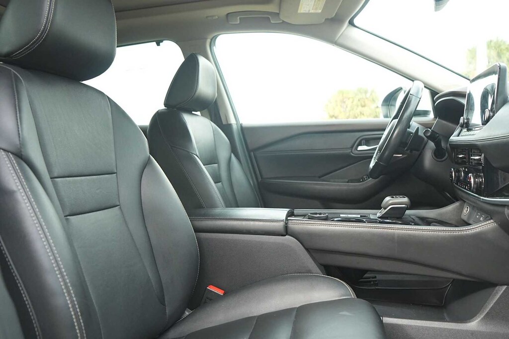 NON-SMOKER, CARFAX ONE OWNER, Rogue SL, 4D Sport Utility, 1.5L I3 Turbocharged DOHC 12V LEV3-ULEV50 201hp, CVT with Xtronic, AWD, Pearl White Tricoat, Charcoal w/Leather-Appointed Seat Trim, Bose Premium Audio System, Front, Side & Rear Sonar, Motion Activated Power Liftgate, Navigation System, ProPILOT Assist w/Navi-link, Radio: AM/FM NissanConnect w/Navigation, Rear Door Sunshades, SL Premium Package, Traffic Sign Recognition, Tri-Zone HVAC, 19 Aluminum Alloy Wheels, 4-Wheel Disc Brakes, 5.604 Axle Ratio, 6 Speakers, ABS brakes, Air Conditioning, Alloy wheels, AM/FM Radio, AM/FM radio: SiriusXM, Auto High-beam Headlights, Auto-dimming Rear-View mirror, Automatic temperature control, Brake assist, Bumpers: body-color, Delay-off headlights, Driver door bin, Driver vanity mirror, Dual front impact airbags, Dual front side impact airbags, Electronic Stability Control, Emergency communication system: NissanConnect Services, Floor Mats w/2-Piece Cargo Area Protector, Four wheel independent suspension, Front anti-roll bar, Front Bucket Seats, Front Center Armrest, Front dual zone A/C, Front reading lights, Fully automatic headlights, Heated door mirrors, Heated Front Bucket Seats, Heated front seats, Heated steering wheel, Illuminated entry, Knee airbag, Leather steering wheel, Leather-Appointed Seat Trim, Low tire pressure warning, Memory seat, NissanConnect featuring Apple CarPlay and Android Auto, Occupant sensing airbag, Outside temperature display, Overhead airbag, Overhead console, Panic alarm, Passenger door bin, Passenger vanity mirror, Power door mirrors, Power driver seat, Power Liftgate, Power moonroof, Power passenger seat, Power steering, Power windows, Radio data system, Rear anti-roll bar, Rear Parking Sensors, Rear reading lights, Rear seat center armrest, Rear side impact airbag, Rear window defroster, Rear window wiper, Remote keyless entry, Security system, Speed control, Speed-Sensitive Wipers, Split folding rear seat, Spoiler, Steering wheel mounted audio controls, Tachometer, Telescoping steering wheel, Tilt steering wheel, Traction control, Trip computer, Turn signal indicator mirrors, Variably intermittent wipers, Rogue SL, 4D Sport Utility, 1.5L I3 Turbocharged DOHC 12V LEV3-ULEV50 201hp, CVT with Xtronic, AWD, Pearl White Tricoat, Charcoal w/Leather-Appointed Seat Trim, Bose Premium Audio System, Front, Side & Rear Sonar, Motion Activated Power Liftgate, Navigation System, ProPILOT Assist w/Navi-link, Radio: AM/FM NissanConnect w/Navigation, Rear Door Sunshades, SL Premium Package, Traffic Sign Recognition, Tri-Zone HVAC.