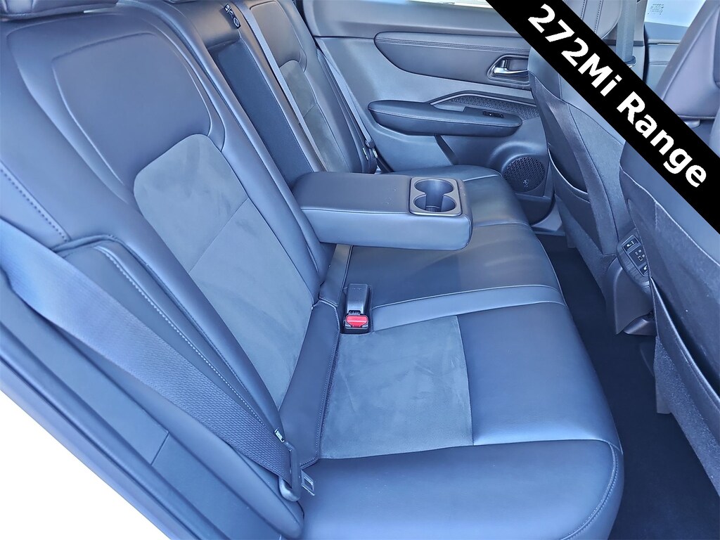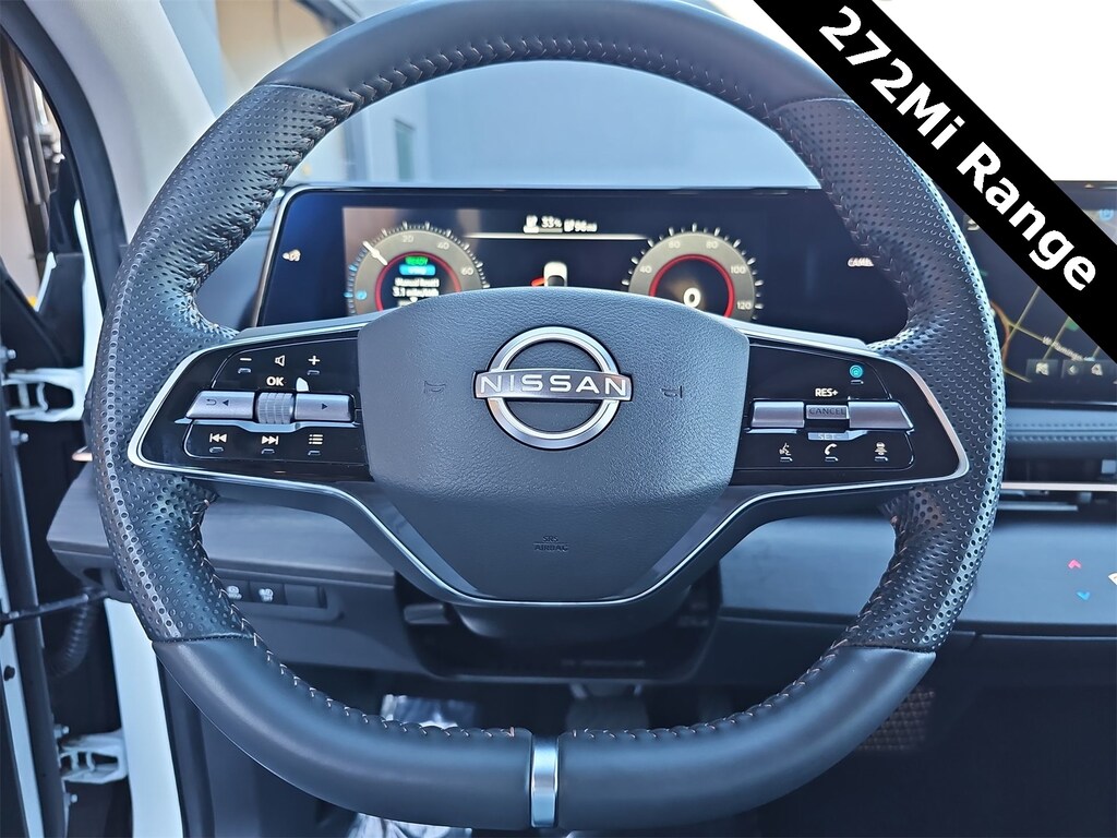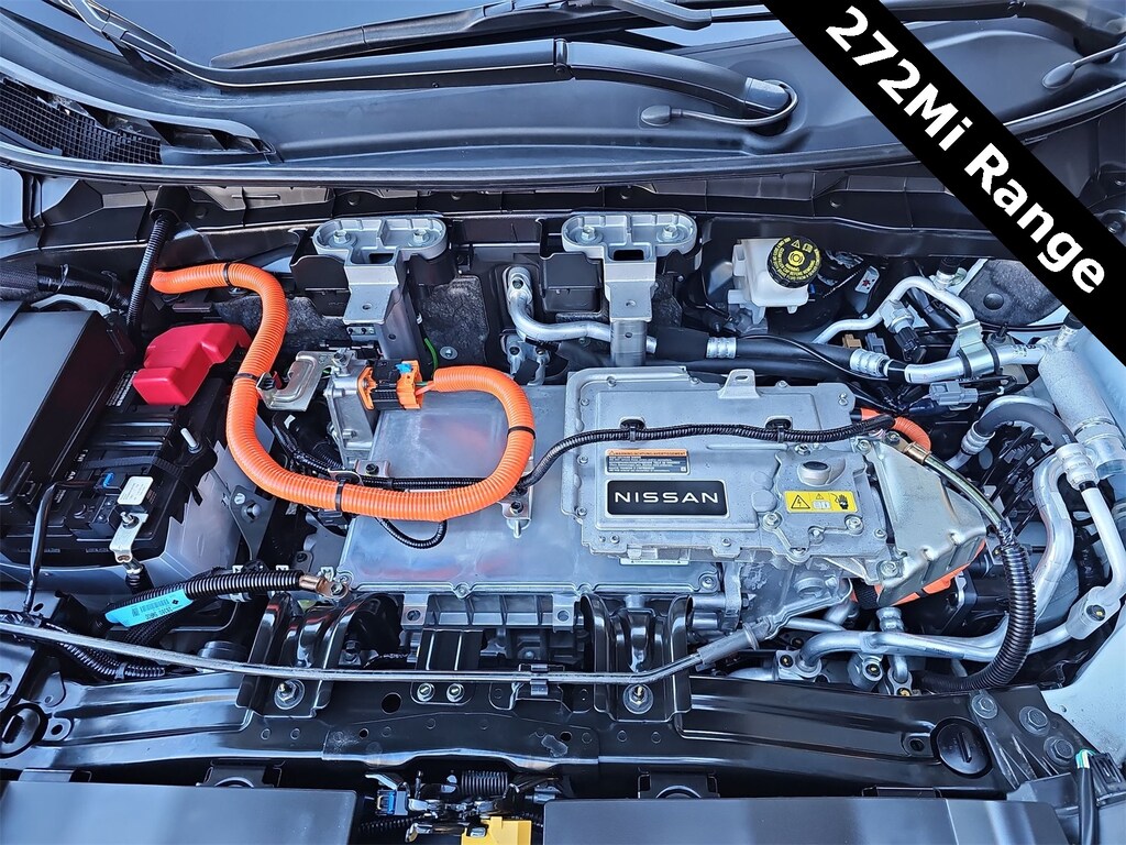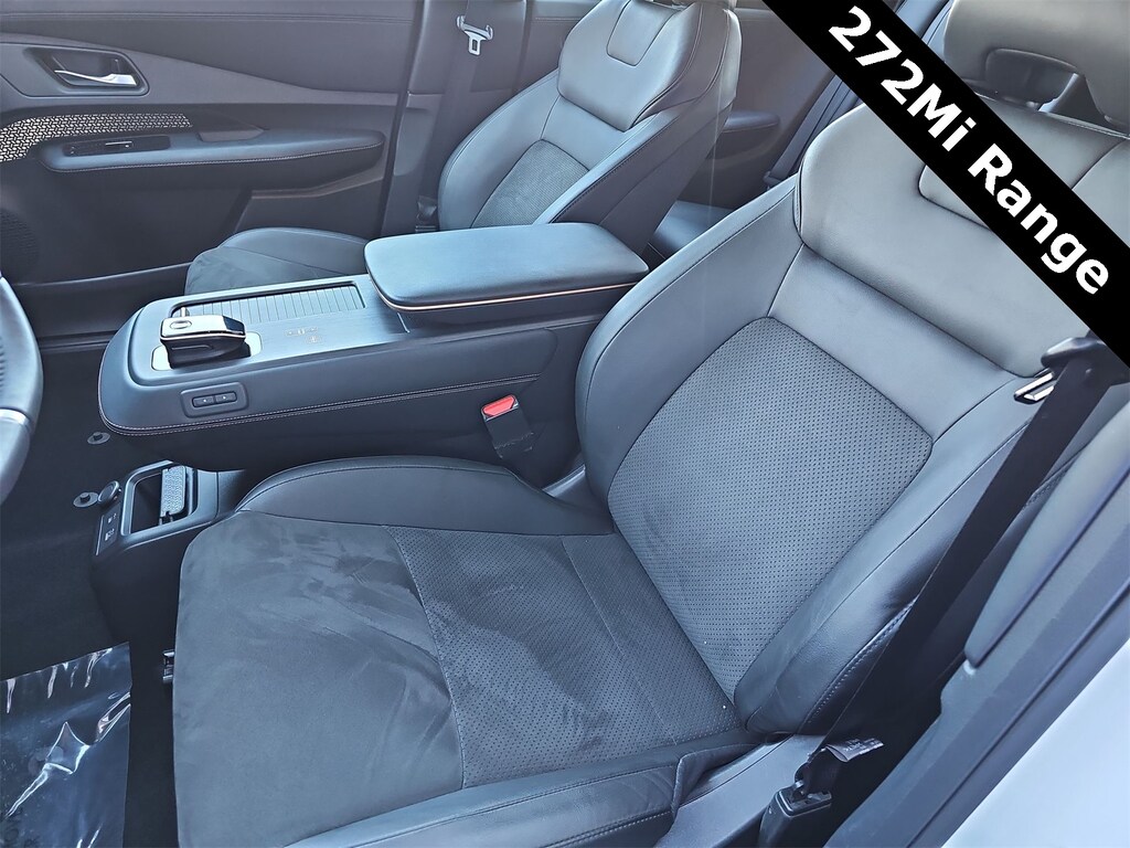 THIS VEHICLE IS EQUIPPED WITH THE FOLLOWING OPTIONS AND FEATURES: 19 Alloy Wheels, 4-Wheel Disc Brakes, 6 Speakers, 8.896/7.679 Final Drive Ratio, ABS brakes, Air Conditioning, Alloy wheels, AM/FM radio: SiriusXM, Auto High-beam Headlights, Automatic temperature control, Brake assist, Bumpers: body-color, Carpeted Floor Mats & First Aid Kit, Delay-off headlights, Driver door bin, Driver vanity mirror, Dual front impact airbags, Dual front side impact airbags, Electronic Stability Control, Emergency communication system: NissanConnect EV & Services, Four wheel independent suspension, Front anti-roll bar, Front Bucket Seats, Front Center Armrest, Front dual zone A/C, Front reading lights, Heads-Up Display, Heated door mirrors, Heated Front Bucket Seats, Heated front seats, Heated rear seats, Heated steering wheel, Illuminated entry, Illuminated Kick Plates, Knee airbag, Leather steering wheel, Leatherette Seating Surfaces, Low tire pressure warning, Memory seat, Navigation system: Nissan Door to Door Connected Navigation, Nissan USB Charging Cable Set, Occupant sensing airbag, Outside temperature display, Overhead airbag, Panic alarm, Passenger door bin, Passenger vanity mirror, Power door mirrors, Power driver seat, Power steering, Power windows, Radio: AM/FM Audio System, Rear anti-roll bar, Rear reading lights, Rear seat center armrest, Rear side impact airbag, Rear window defroster, Rear window wiper, Remote keyless entry, Security system, Speed control, Speed-sensing steering, Speed-Sensitive Wipers, Split folding rear seat, Spoiler, Steering wheel mounted audio controls, Telescoping steering wheel, Tilt steering wheel, Traction control, Trip computer, and Variably intermittent wipers. 97/86 City/Highway MPG