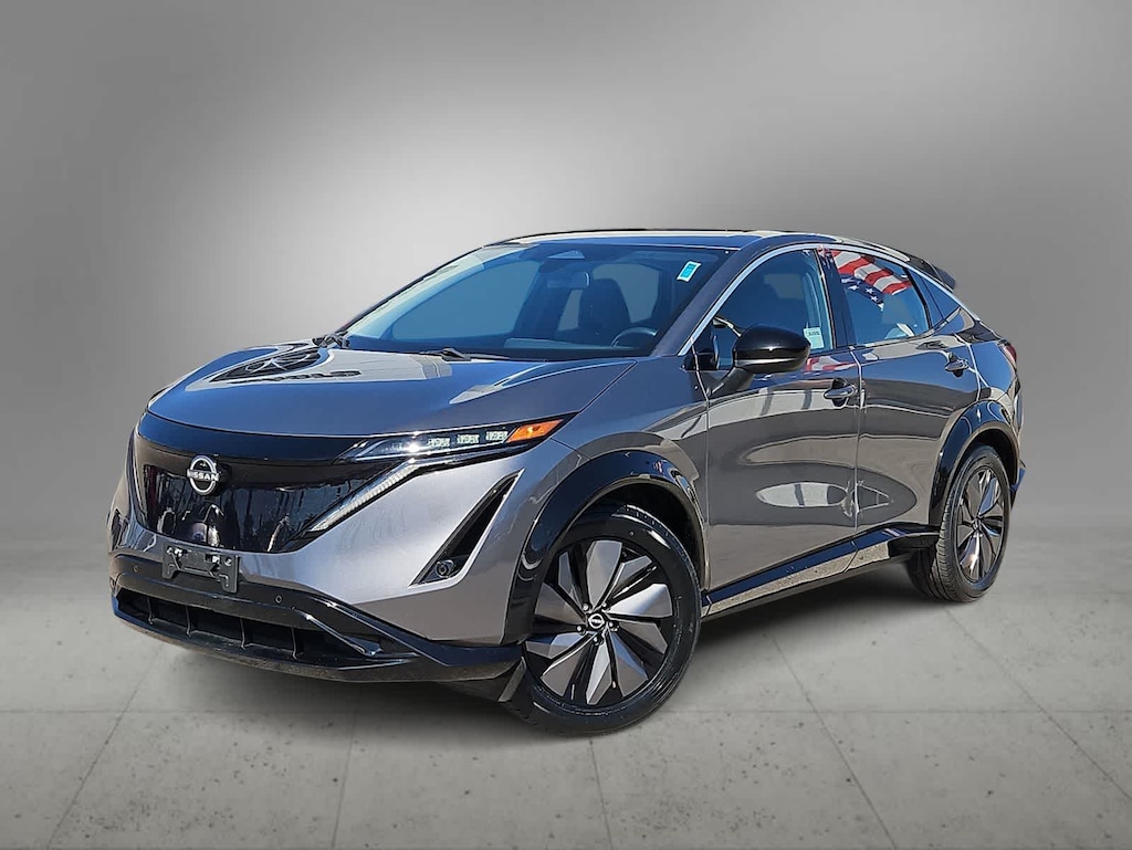 Powerfully poised and boldly electrified, our One Owner, Accident Free 2024 Nissan ARIYA Venture+ commands attention in Gun Metallic, delivering instant torque, sleek performance, and next-gen EV strength with every drive! Motivated by an Electric Motor providing 238hp to a Single Speed Automatic transmission, so that you can get started with almost instant torque. This Front Wheel Drive SUV also shows off an all-electric driving range of nearly 304 miles, thanks to its 87kWh battery pack. Bold and breathtaking, our ARIYA shows off LED lighting, a rear roof spoiler, 19-inch alloy wheels, heated power-folding mirrors, and Satin Chrome trim.