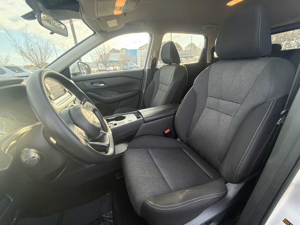 Rogue SV is nicely equipped with Rogue SV, 4D Sport Utility, 1.5L DOHC, CVT with Xtronic, FWD, Brilliant Silver Metallic, Charcoal Cloth, 4-Wheel Disc Brakes, 5.676 Axle Ratio, 6 Speakers, ABS brakes, Air Conditioning, Alloy wheels, AM/FM radio: SiriusXM, Auto High-beam Headlights, Automatic temperature control, Brake assist, Bumpers: body-color, Cloth Seat Trim w/Patterned Inserts, Delay-off headlights, Driver door bin, Driver vanity mirror, Dual front impact airbags, Dual front side impact airbags, Electronic Stability Control, Emergency communication system: NissanConnect Services, First Aid Kit, Floor Mats w/1-Piece Cargo Area Protector, Four wheel independent suspension, Front anti-roll bar, Front Bucket Seats, Front Center Armrest, Front dual zone A/C, Front reading lights, Fully automatic headlights, Heated door mirrors, Illuminated entry, Knee airbag, Low tire pressure warning, NissanConnect featuring Apple CarPlay and Android Auto, Occupant sensing airbag, Outside temperature display, Overhead airbag, Overhead console, Panic alarm, Passenger door bin, Passenger vanity mirror, Power door mirrors, Power driver seat, Power Liftgate, Power steering, Power windows, Radio data system, Radio: AM/FM NissanConnect, Rear anti-roll bar, Rear Parking Sensors, Rear seat center armrest, Rear side impact airbag, Rear window defroster, Rear window wiper, Remote keyless entry, Speed control, Speed-Sensitive Wipers, Split folding rear seat, Spoiler, Steering wheel mounted audio controls, Tachometer, Telescoping steering wheel, Tilt steering wheel, Traction control, Trip computer, Variably intermittent wipers, and Wheels: 18 Dark Painted Machine Finished Alloy.