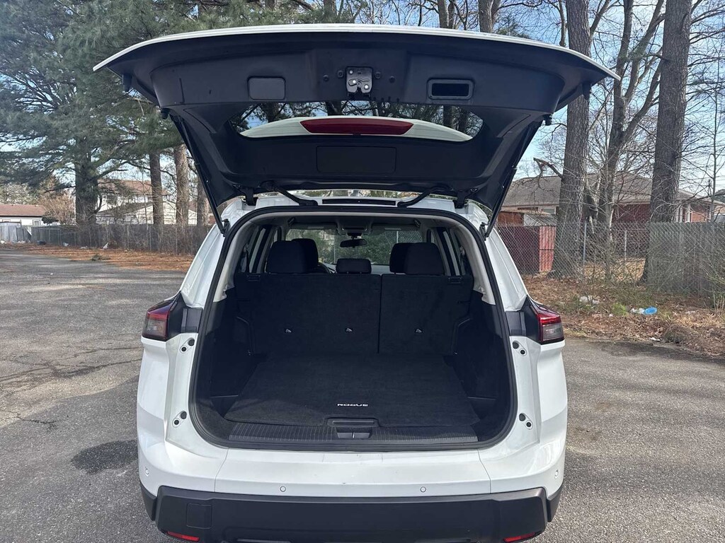Rogue S is nicely equipped with Rogue S, 4D Sport Utility, 1.5L DOHC, CVT with Xtronic, FWD, Everest White Pearl, Charcoal w/Cloth Seat Trim, 17 Aluminum Alloy Wheels, 4 Speakers, 4-Wheel Disc Brakes, 5.676 Axle Ratio, ABS brakes, Air Conditioning, Alloy wheels, AM/FM radio: SiriusXM, Auto High-beam Headlights, Blind Spot Warning, Brake assist, Bumpers: body-color, Cloth Seat Trim, Delay-off headlights, Driver door bin, Driver vanity mirror, Dual front impact airbags, Dual front side impact airbags, Electronic Stability Control, Four wheel independent suspension, Front anti-roll bar, Front Bucket Seats, Front Center Armrest, Front reading lights, Fully automatic headlights, Illuminated entry, Knee airbag, Low tire pressure warning, NissanConnect featuring Apple CarPlay and Android Auto, Occupant sensing airbag, Outside temperature display, Overhead airbag, Overhead console, Panic alarm, Passenger door bin, Passenger vanity mirror, Power door mirrors, Power steering, Power windows, Radio data system, Radio: AM/FM NissanConnect, Rear anti-roll bar, Rear Parking Sensors, Rear seat center armrest, Rear side impact airbag, Rear window defroster, Rear window wiper, Remote keyless entry, Speed control, Speed-Sensitive Wipers, Split folding rear seat, Spoiler, Steering wheel mounted audio controls, Tachometer, Telescoping steering wheel, Tilt steering wheel, Traction control, Trip computer, and Variably intermittent wipers.
