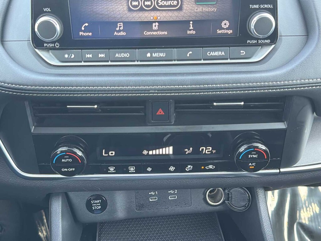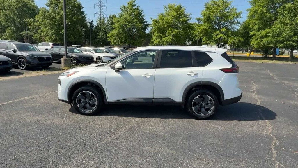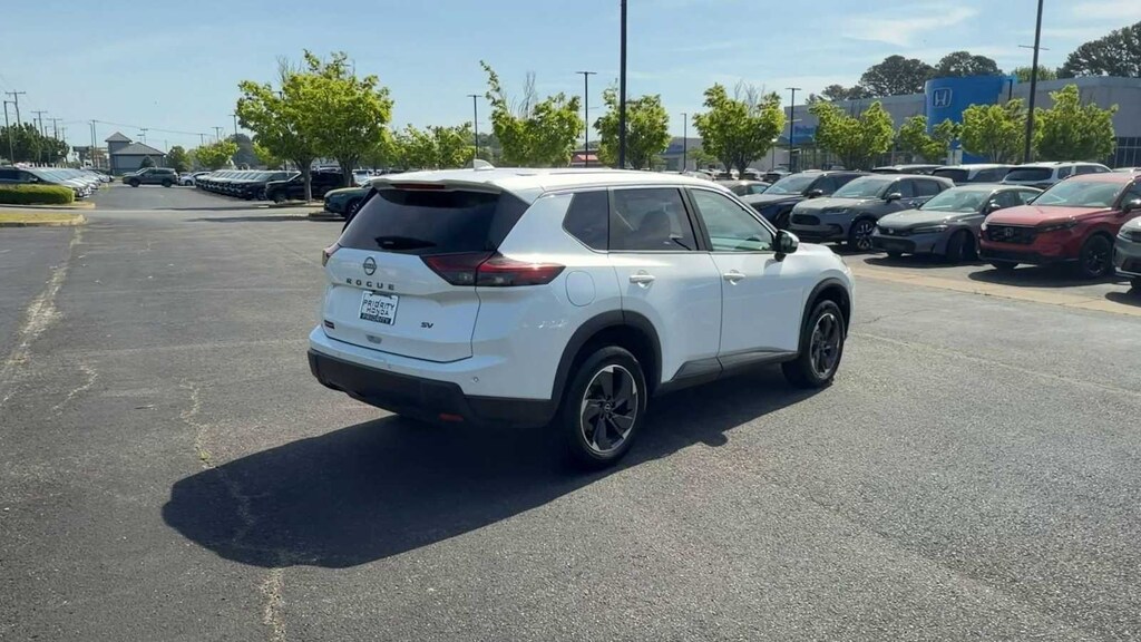 Rogue SV is nicely equipped with 4-Wheel Disc Brakes, 5.676 Axle Ratio, 6 Speakers, ABS brakes, Air Conditioning, Alloy wheels, AM/FM radio: SiriusXM, Auto High-beam Headlights, Automatic temperature control, Brake assist, Bumpers: body-color, Cloth Seat Trim w/Patterned Inserts, Delay-off headlights, Driver door bin, Driver vanity mirror, Dual front impact airbags, Dual front side impact airbags, Electronic Stability Control, Emergency communication system: NissanConnect Services, Four wheel independent suspension, Front anti-roll bar, Front Bucket Seats, Front Center Armrest, Front dual zone A/C, Front reading lights, Fully automatic headlights, Heated door mirrors, Illuminated entry, Knee airbag, Low tire pressure warning, NissanConnect featuring Apple CarPlay and Android Auto, Occupant sensing airbag, Outside temperature display, Overhead airbag, Overhead console, Panic alarm, Passenger door bin, Passenger vanity mirror, Power door mirrors, Power driver seat, Power Liftgate, Power steering, Power windows, Radio data system, Radio: AM/FM NissanConnect, Rear anti-roll bar, Rear Parking Sensors, Rear seat center armrest, Rear side impact airbag, Rear window defroster, Rear window wiper, Remote keyless entry, Speed control, Speed-Sensitive Wipers, Split folding rear seat, Spoiler, Steering wheel mounted audio controls, Tachometer, Telescoping steering wheel, Tilt steering wheel, Traction control, Trip computer, Variably intermittent wipers, and Wheels: 18 Dark Painted Machine Finished Alloy.