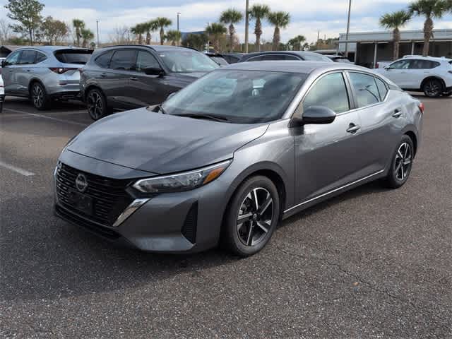 This 2024 Nissan Sentra SV in Gun Metallic, features 16 Alloy Wheels, 4-Wheel Disc Brakes, 6 Speakers, ABS brakes, Air Conditioning, Alloy wheels, AM/FM radio: SiriusXM, Auto High-beam Headlights, Blind Spot Warning, Brake assist, Bumpers: body-color, Carpeted Floor Mats w/Trunk Mat, Delay-off headlights, Driver door bin, Driver vanity mirror, Dual front impact airbags, Dual front side impact airbags, Electronic Stability Control, Four wheel independent suspension, Front anti-roll bar, Front Bucket Seats, Front Center Armrest, Front reading lights, Fully automatic headlights, Illuminated entry, Knee airbag, Leather steering wheel, Low tire pressure warning, NissanConnect featuring Apple CarPlay and Android Auto, Occupant sensing airbag, Outside temperature display, Overhead airbag, Overhead console, Panic alarm, Passenger door bin, Passenger vanity mirror, Power door mirrors, Power steering, Power windows, Radio data system, Radio: AM/FM w/RDS/MP3/Aux-In, Rear anti-roll bar, Rear Parking Sensors, Rear side impact airbag, Rear window defroster, Remote keyless entry, Security system, Speed control, Speed-sensing steering, Split folding rear seat, Steering wheel mounted audio controls, Tachometer, Technical Spec Change 2, Telescoping steering wheel, Tilt steering wheel, Traction control, Trip computer, Upgraded Cloth Seat Trim, and Variably intermittent wipers: