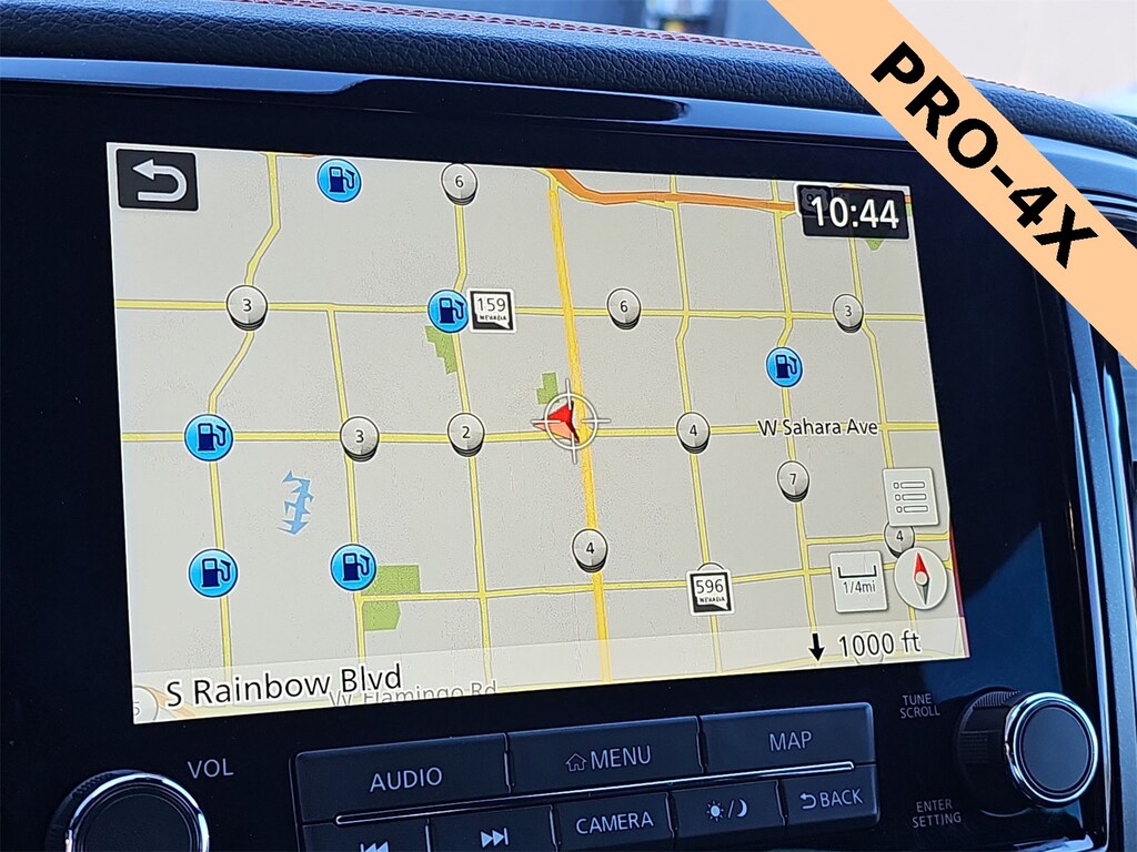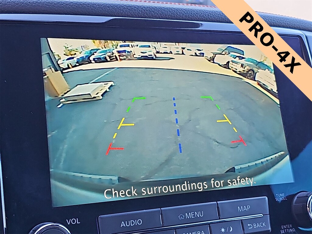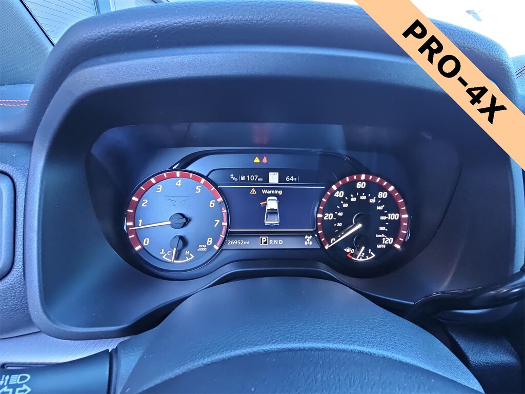 THIS VEHICLE IS EQUIPPED WITH THE FOLLOWING OPTIONS AND FEATURES: 4WD, 3.692 Axle Ratio, 4-Wheel Disc Brakes, 6 Speakers, ABS brakes, Air Conditioning, Alloy wheels, AM/FM radio: SiriusXM, Apple CarPlay/Android Auto, Auto High-beam Headlights, Auto-dimming Rear-View mirror, Auto-leveling suspension, Automatic temperature control, Blind Spot Warning, Brake assist, Cloth Seat Trim w/Vinyl Bolsters, Compass, Delay-off headlights, Driver door bin, Driver vanity mirror, Dual front impact airbags, Dual front side impact airbags, Electronic Stability Control, Emergency communication system: NissanConnect Services, Front anti-roll bar, Front Bucket Seats, Front Captains Seats, Front Center Armrest, Front dual zone A/C, Front fog lights, Front reading lights, Front wheel independent suspension, Fully automatic headlights, Garage door transmitter: HomeLink, Heated door mirrors, Illuminated entry, Knee airbag, Leather steering wheel, Low tire pressure warning, Navigation system: NissanConnect with Navigation and Services, Occupant sensing airbag, Outside temperature display, Overhead airbag, Overhead console, Panic alarm, Passenger door bin, Passenger vanity mirror, Power door mirrors, Power driver seat, Power steering, Power windows, PRO-4X Badged Floor Mats, PRO-4X Illuminated Kick Plate, PRO-4X Mud Flaps, PRO-4X Rugged Step Boards, Radio data system, Radio: NissanConnect w/Navigation, Rain sensing wipers, Rear anti-roll bar, Rear Parking Sensors, Rear reading lights, Rear seat center armrest, Rear step bumper, Rear Underseat Storage, Rear window defroster, Remote keyless entry, Security system, Speed control, Speed-sensing steering, Speed-Sensitive Wipers, Split folding rear seat, Steering wheel mounted audio controls, Tachometer, Telescoping steering wheel, Tilt steering wheel, Traction control, Trip computer, USB Charging Cables, Variably intermittent wipers, Voltmeter, and Wheels: 18 x 8 Painted Dark Finish Alloy.