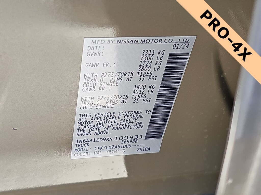 2024 Nissan Titan PRO-4X 4WD 9-Speed Automatic 5.6L V8 DOHC 32V LEV3-ULEV70 400hp 4WD.