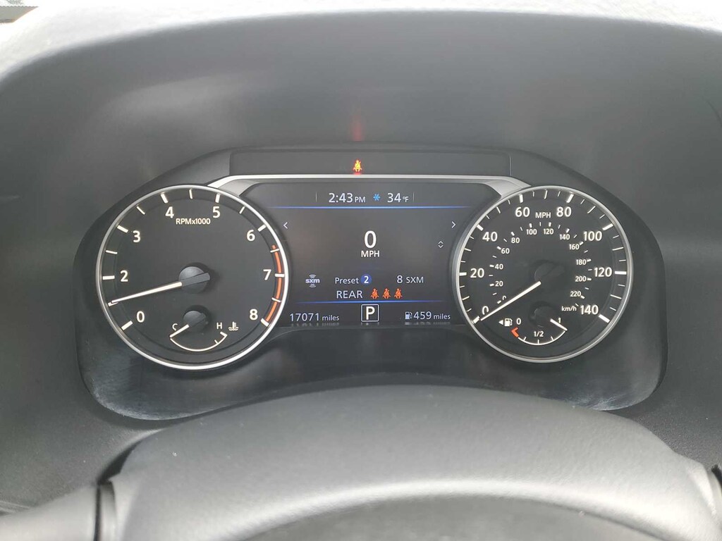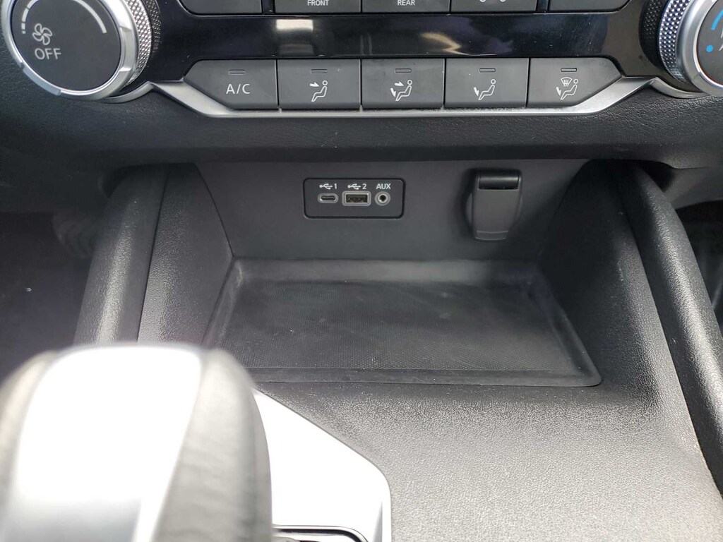 CVT with Xtronic, 17 Machined Alloy Wheels, 4-Wheel Disc Brakes, 6 Speakers, ABS brakes, Air Conditioning, Alloy wheels, AM/FM radio: SiriusXM, Auto High-beam Headlights, Blind Spot Warning, Brake assist, Bumpers: body-color, Cloth Seat Trim, Delay-off headlights, Driver door bin, Driver vanity mirror, Dual front impact airbags, Dual front side impact airbags, Electronic Stability Control, Four wheel independent suspension, Front anti-roll bar, Front Bucket Seats, Front Center Armrest, Front reading lights, Fully automatic headlights, Illuminated entry, Knee airbag, Low tire pressure warning, NissanConnect featuring Apple CarPlay and Android Auto, Occupant sensing airbag, Outside temperature display, Overhead airbag, Overhead console, Panic alarm, Passenger door bin, Passenger vanity mirror, Power door mirrors, Power driver seat, Power steering, Power windows, Radio data system, Radio: AM/FM Audio System, Rear anti-roll bar, Rear Parking Sensors, Rear reading lights, Rear seat center armrest, Rear side impact airbag, Rear window defroster, Remote keyless entry, Security system, Speed control, Speed-sensing steering, Speed-Sensitive Wipers, Split folding rear seat, Steering wheel mounted audio controls, Tachometer, Telescoping steering wheel, Tilt steering wheel, Traction control, Trip computer, Variably intermittent wipers, CVT with Xtronic.