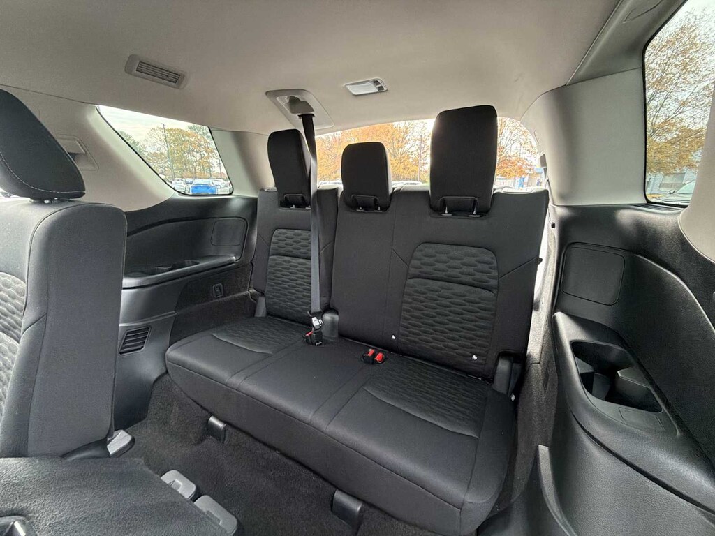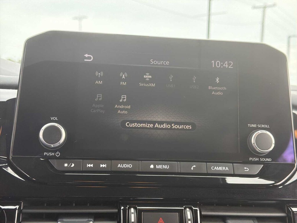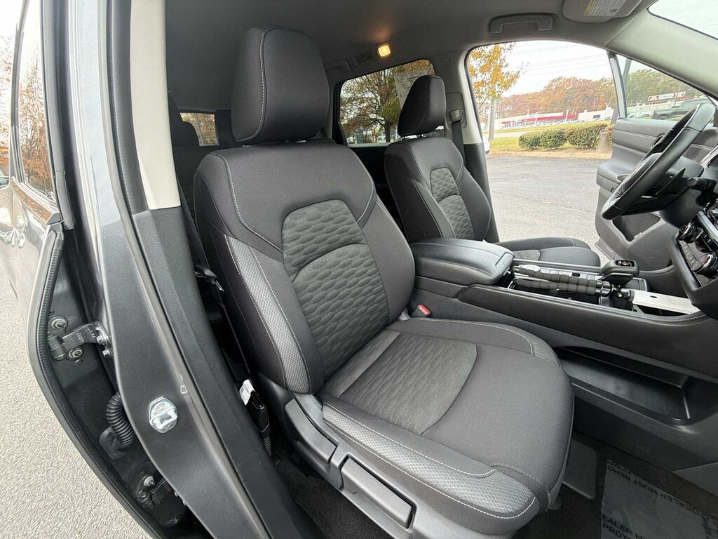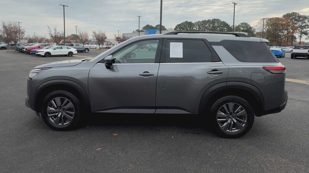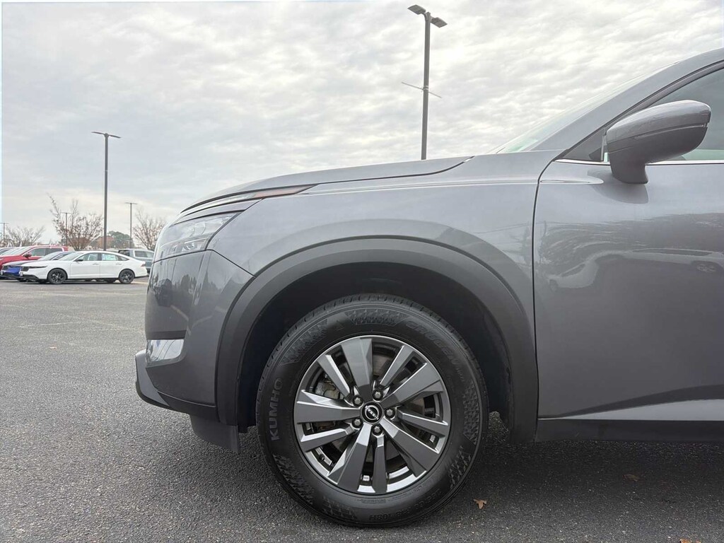 Pathfinder SV is nicely equipped with Pathfinder SV, 4D Sport Utility, 3.5L V6 DOHC, 9-Speed Automatic, 4WD, Gun Metallic/Super Black, Charcoal w/Leather-Appointed Seating Surfaces, 3rd row seats: bench, 4-Wheel Disc Brakes, 6 Speakers, ABS brakes, Air Conditioning, Alloy wheels, AM/FM radio: SiriusXM, Auto High-beam Headlights, Automatic temperature control, Brake assist, Bumpers: body-color, Cloth Seating Surfaces, Delay-off headlights, Driver door bin, Driver vanity mirror, Dual front impact airbags, Dual front side impact airbags, Electronic Stability Control, Emergency communication system, Four wheel independent suspension, Front anti-roll bar, Front Bucket Seats, Front Center Armrest, Front dual zone A/C, Front reading lights, Fully automatic headlights, Heated door mirrors, Heated Front Bucket Seats, Heated front seats, Illuminated entry, Knee airbag, Leather steering wheel, Low tire pressure warning, NissanConnect featuring Apple CarPlay and Android Auto, Occupant sensing airbag, Outside temperature display, Overhead airbag, Overhead console, Panic alarm, Passenger door bin, Passenger vanity mirror, Power door mirrors, Power driver seat, Power Liftgate, Power steering, Power windows, Radio data system, Rear air conditioning, Rear anti-roll bar, Rear Parking Sensors, Rear reading lights, Rear seat center armrest, Rear side impact airbag, Rear window defroster, Rear window wiper, Reclining 3rd row seat, Remote keyless entry, Security system, Speed control, Speed-sensing steering, Split folding rear seat, Spoiler, Steering wheel mounted audio controls, Tachometer, Telescoping steering wheel, Tilt steering wheel, Traction control, Trip computer, Turn signal indicator mirrors, Variably intermittent wipers, and Wheels: 18 x 8J Painted Alloy.