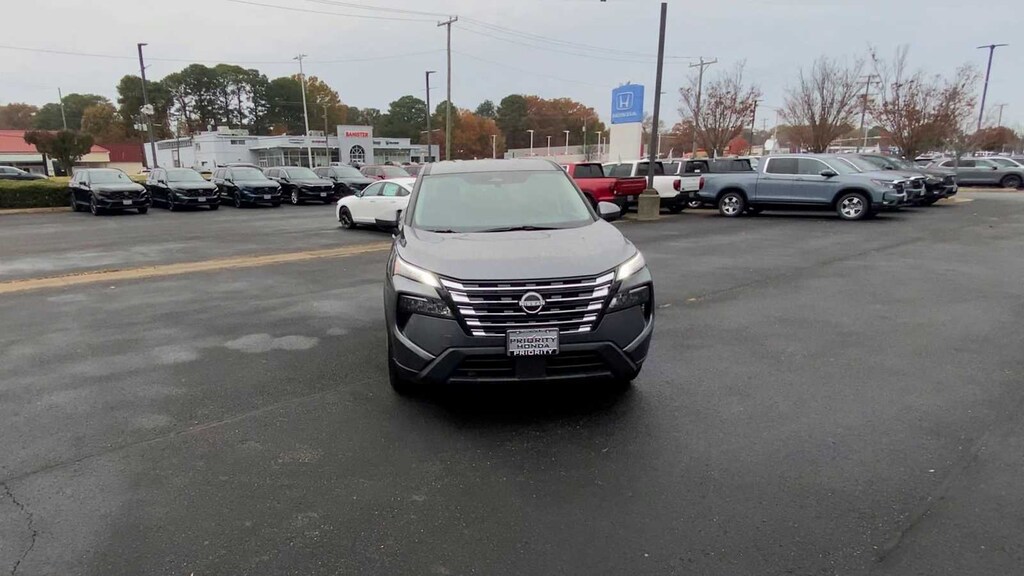 Rogue SV is nicely equipped with Rogue SV, 4D Sport Utility, 1.5L DOHC, CVT with Xtronic, AWD, Gun Metallic, Charcoal w/Cloth Seat Trim, 4-Wheel Disc Brakes, 6 Speakers, ABS brakes, Air Conditioning, Alloy wheels, AM/FM radio: SiriusXM, Auto High-beam Headlights, Automatic temperature control, Brake assist, Bumpers: body-color, Delay-off headlights, Driver door bin, Driver vanity mirror, Dual front impact airbags, Dual front side impact airbags, Electronic Stability Control, Emergency communication system: NissanConnect Services, Four wheel independent suspension, Front anti-roll bar, Front Bucket Seats, Front Center Armrest, Front dual zone A/C, Front reading lights, Fully automatic headlights, Heated door mirrors, Illuminated entry, Knee airbag, Low tire pressure warning, Occupant sensing airbag, Outside temperature display, Overhead airbag, Overhead console, Panic alarm, Passenger door bin, Passenger vanity mirror, Power door mirrors, Power driver seat, Power Liftgate, Power steering, Power windows, Radio data system, Rear anti-roll bar, Rear seat center armrest, Rear side impact airbag, Rear window defroster, Rear window wiper, Remote keyless entry, Speed control, Speed-sensing steering, Speed-Sensitive Wipers, Split folding rear seat, Spoiler, Steering wheel mounted audio controls, Tachometer, Telescoping steering wheel, Tilt steering wheel, Traction control, Trip computer, Variably intermittent wipers, and Wheels: 18 Dark Painted Machine Finished Alloy.