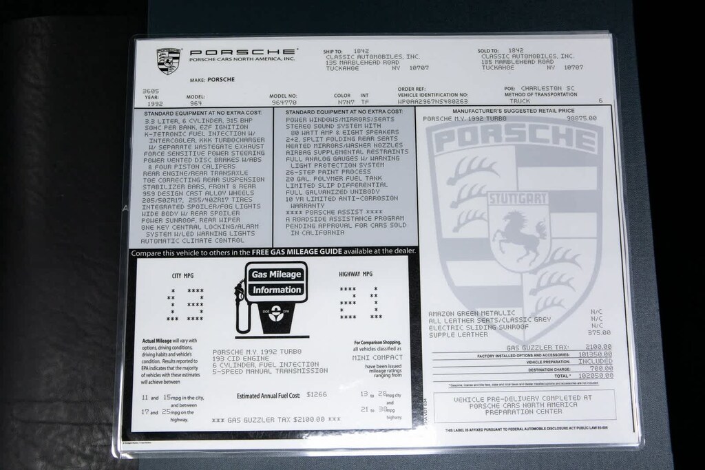 Clean CARFAX. 4-Wheel Disc Brakes, ABS brakes, Air Conditioning, Alloy wheels, AM/FM radio, Automatic temperature control, Bodyside moldings, Cassette, Driver vanity mirror, Dual front impact airbags, Front anti-roll bar, Front Bucket Seats, Front fog lights, Heated door mirrors, Hi-Fi Sound System, Leather steering wheel, Passenger vanity mirror, Power door mirrors, Power moonroof, Power steering, Power windows, Rear anti-roll bar, Rear window defroster, Rear window wiper, Security system, Speed control, Split folding rear seat, Spoiler, Tachometer, Voltmeter. Amazon Green 1992 Porsche 968 Base 6-Speed Manual 3.0L I4 MPI DOHC 16V 236hp