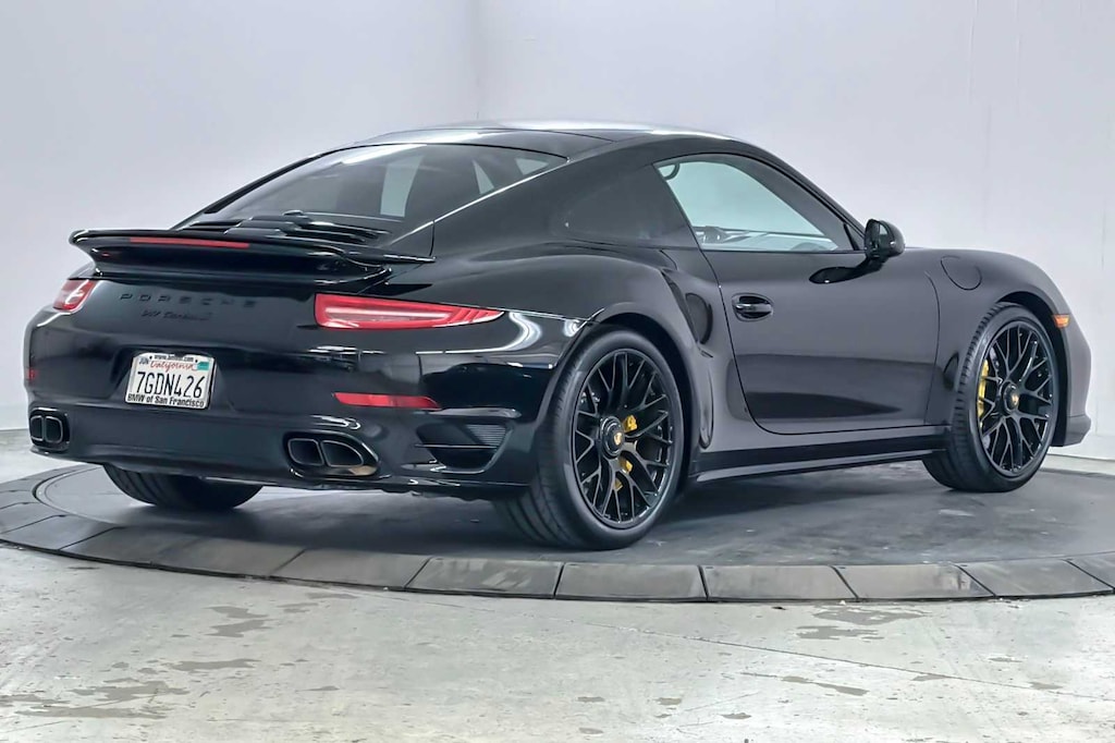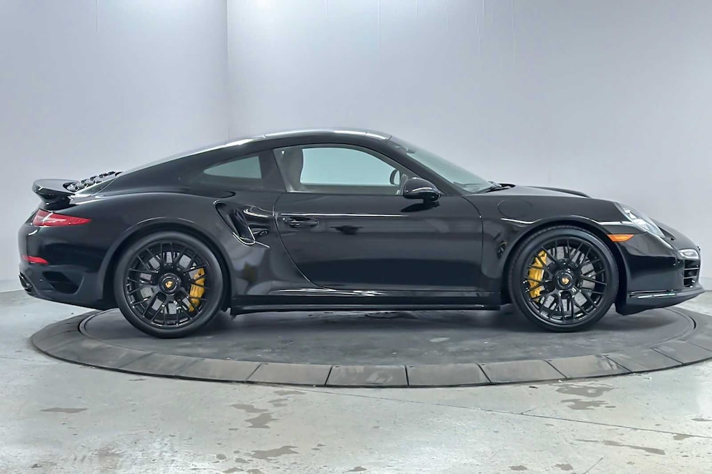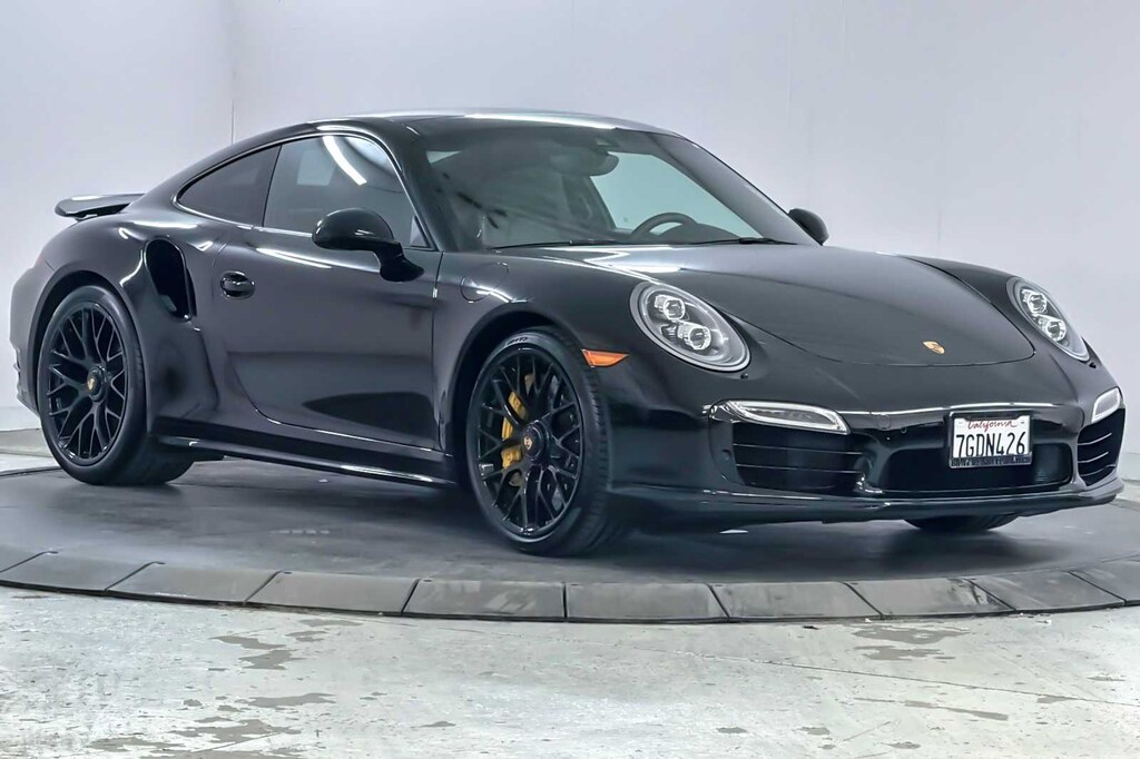 Black 2014 Porsche 911 Turbo S AWD 7-Speed Porsche Doppelkupplung (PDK) 3.8L 6-Cylinder BiTurbo ABS brakes, Alloy wheels, DVD-Audio, Electronic Stability Control, Front dual zone A/C, Heated door mirrors, Illuminated entry, Leather Seat Trim, Low tire pressure warning, Navigation System, Porsche Communication Management, Remote keyless entry, Traction control.
