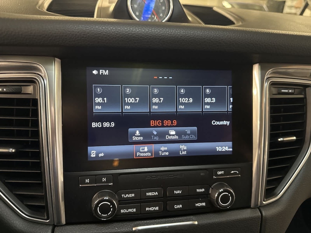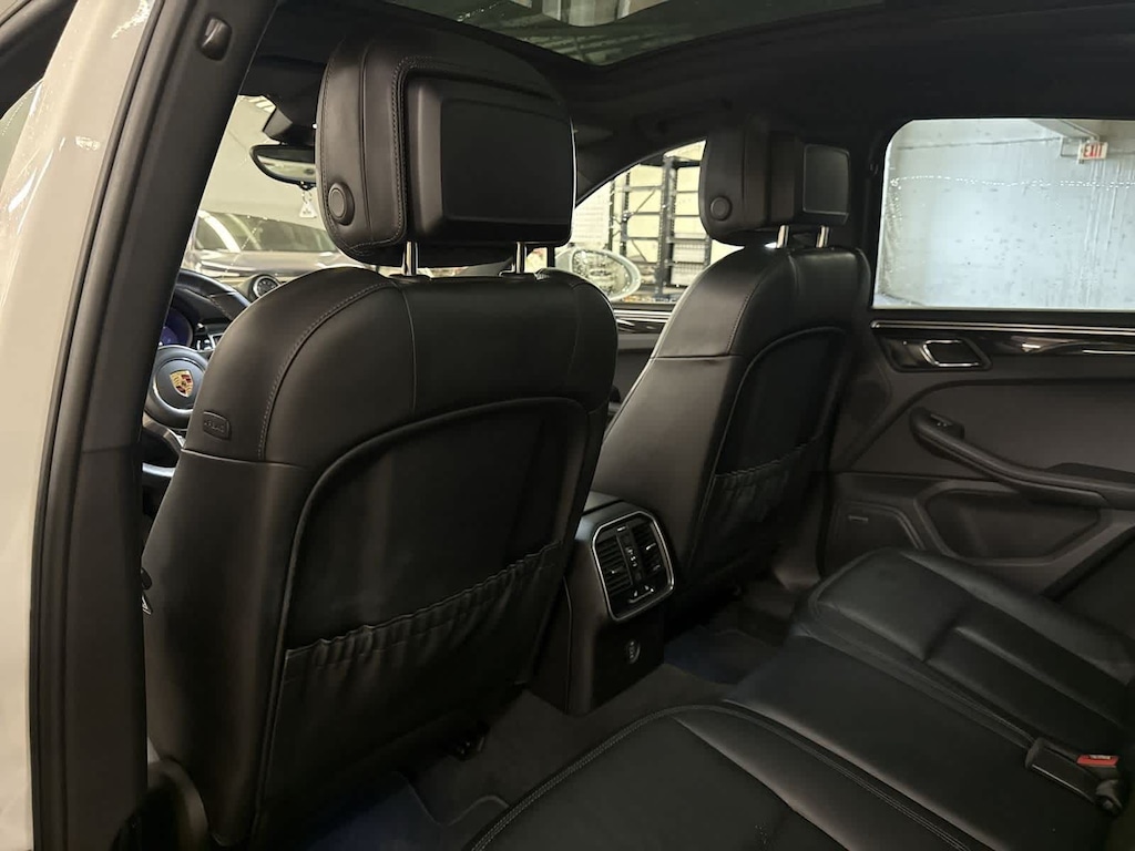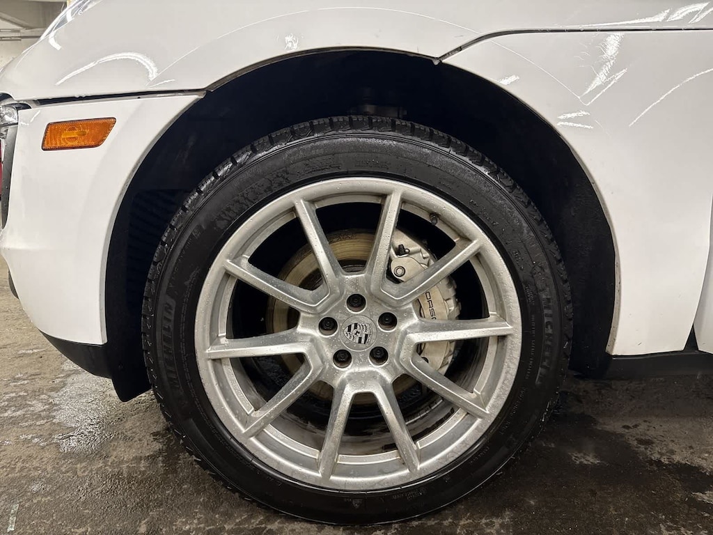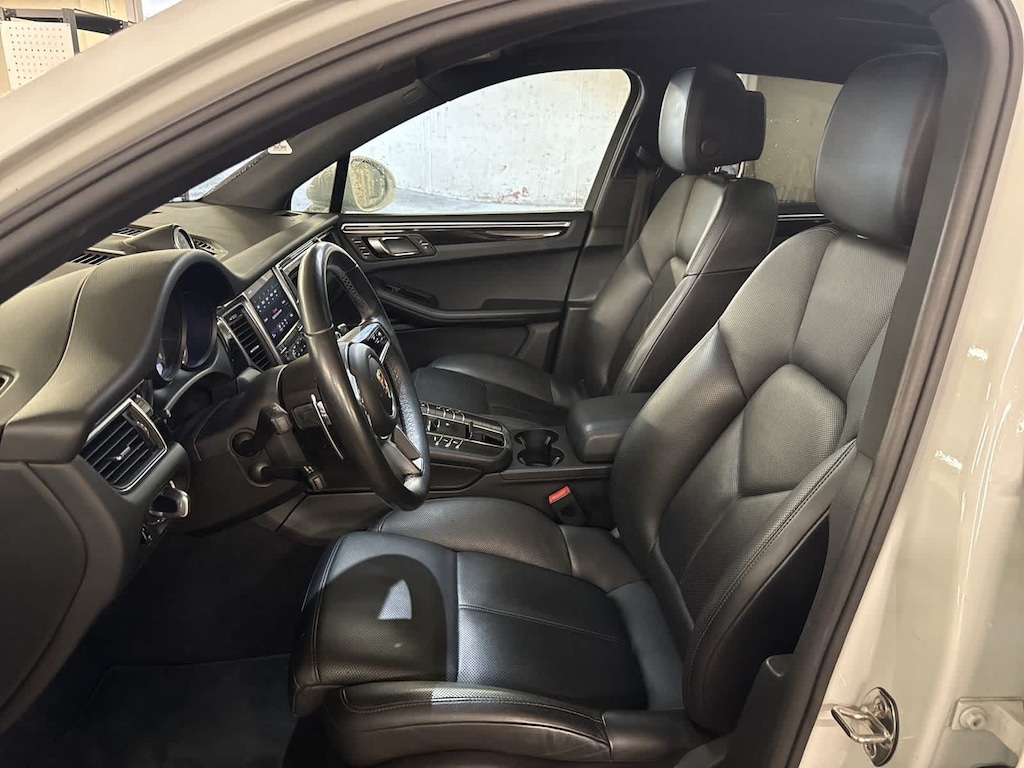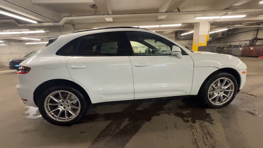 Exterior highlights include 19 Macan Design wheels, bodycolor bumpers, turnsignal mirrors, roof rails, headlight cleaning system, rear spoiler, and Porsches unmistakable athletic design. Recent arrival.