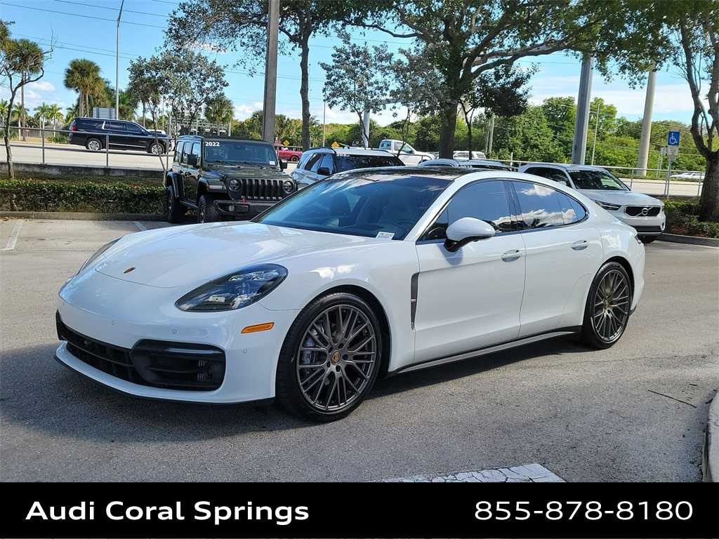 2022 Porsche Panamera 4 Platinum Edition Panamera 4 Platinum Edition, Carrara White Metallic, Black/Chalk w/Leather Seat Trim w/Two-Tone Interior, ABS brakes, Alloy wheels, Assistance Package, Compass, Electronic Stability Control, Front dual zone A/C, Front Massage Seat Function w/Ventilation, Head-Up Display, Heated door mirrors, Heated front seats, Heated rear seats, Illuminated entry, Low tire pressure warning, Navigation System, Porsche Communication Management, Porsche InnoDrive w/Adaptive Cruise Control (ACC), Power Liftgate, Power moonroof, Power Sunblind for Rear Side Windows, Rear dual zone A/C, Remote keyless entry, Surround View, Traction control, Wheels: 21 Excl Design Spt in Satin Platinum.