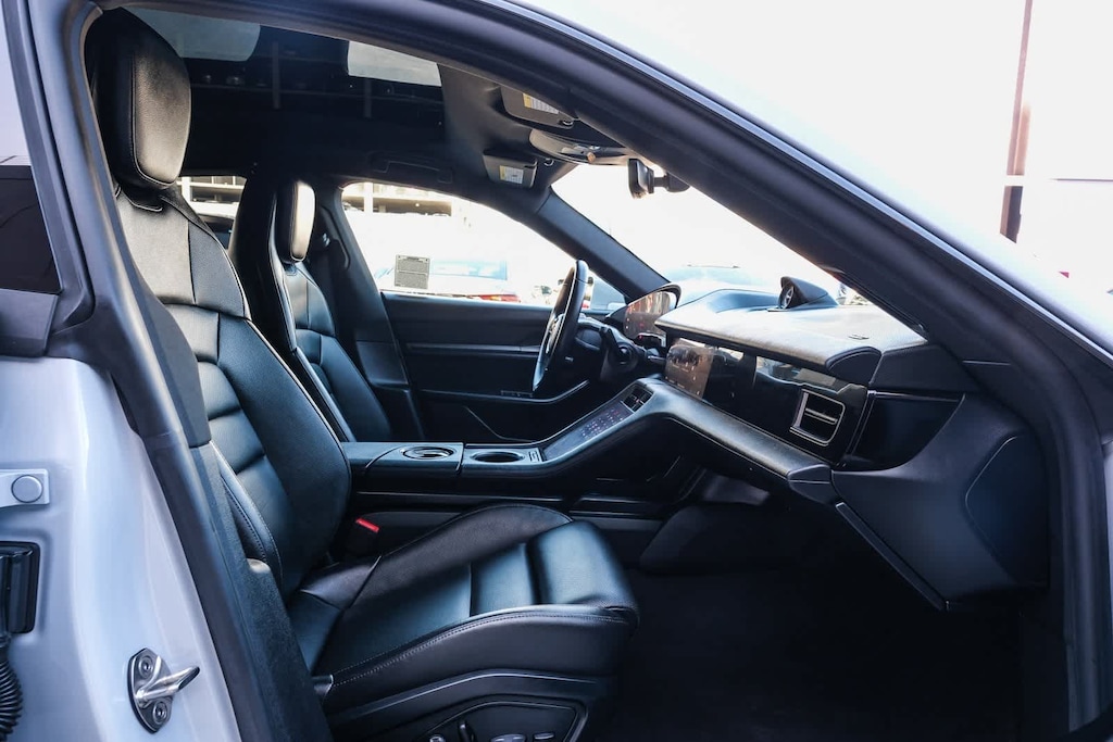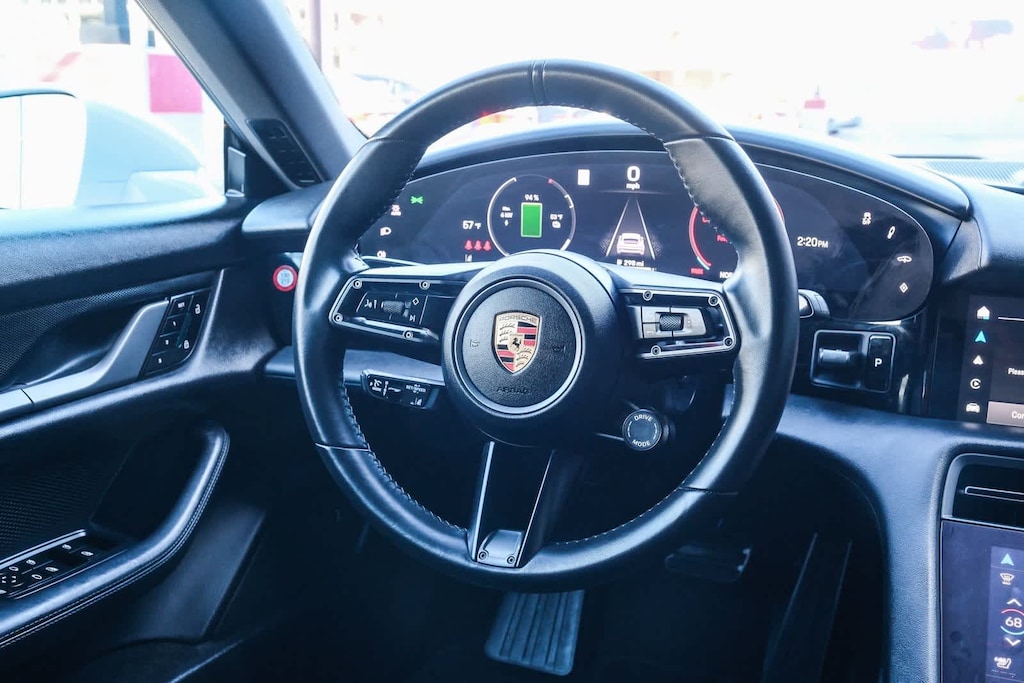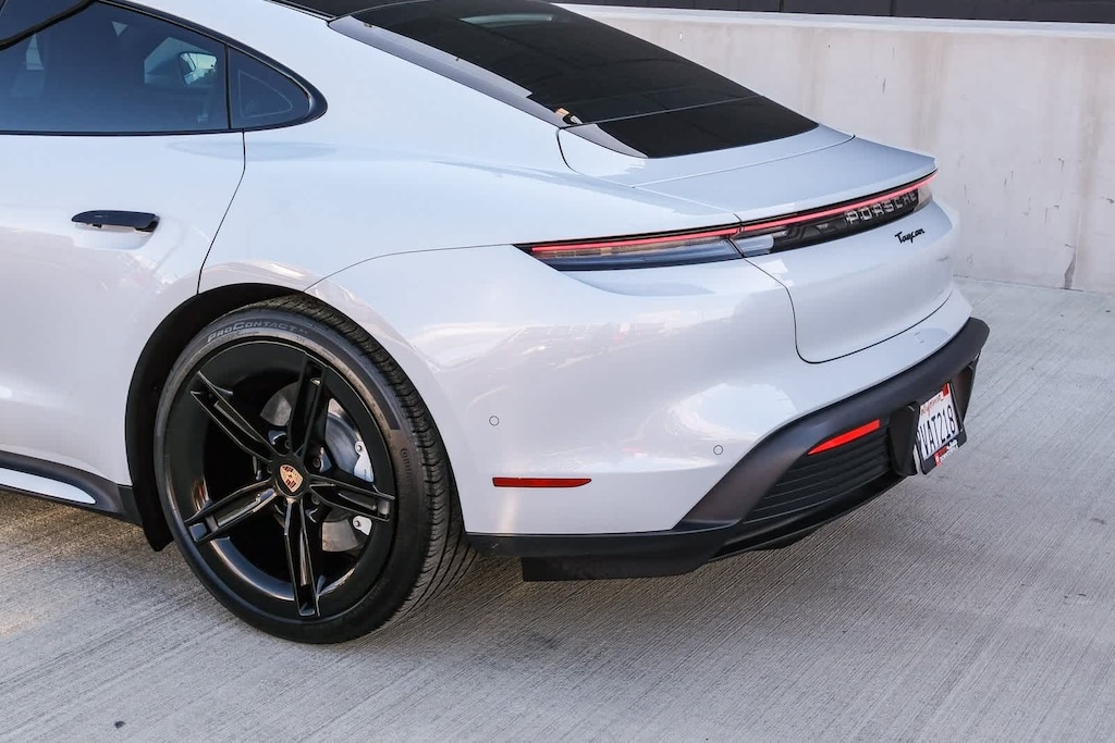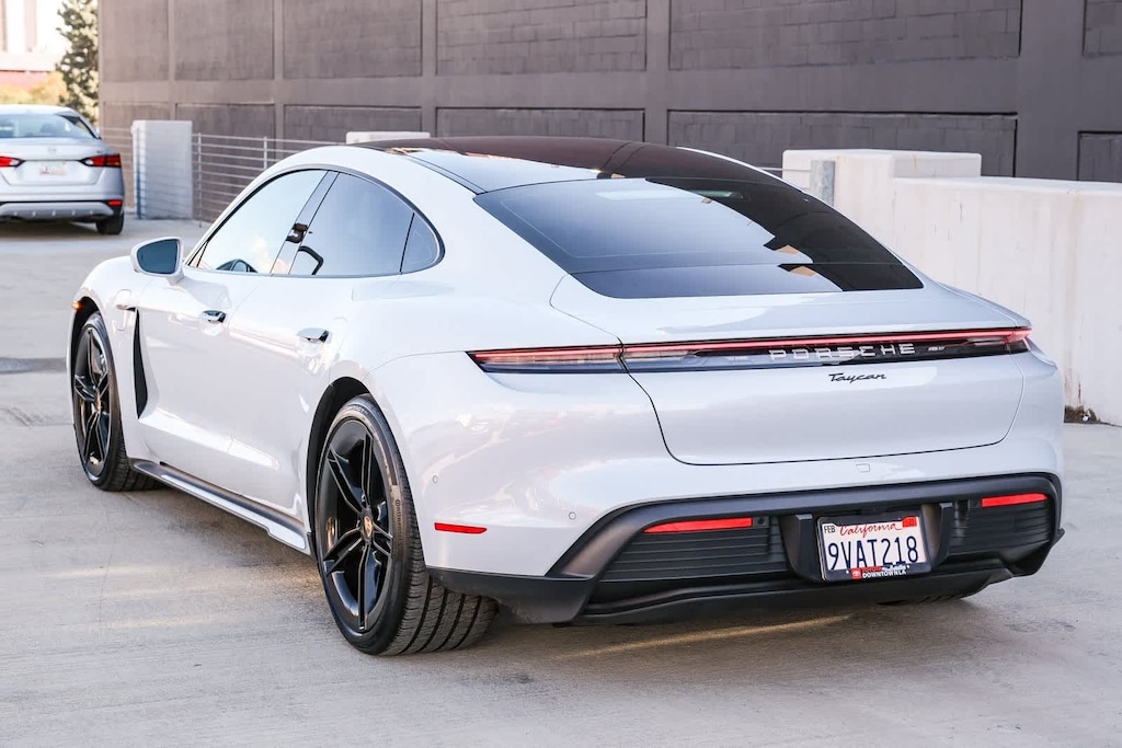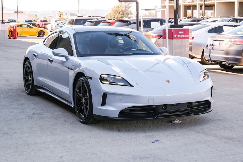 WELCOME TO TOYOTA OF DOWNTOWN LA... 2025 Porsche Taycan Base Ice Grey Metallic 2-Speed Automatic Electric Motor ABS brakes, Alloy wheels, Compass, Electronic Stability Control, Front dual zone A/C, Heated door mirrors, Heated front seats, Illuminated entry, Low tire pressure warning, Navigation System, Porsche Communication Management, Remote keyless entry, Traction control. Clean CARFAX.