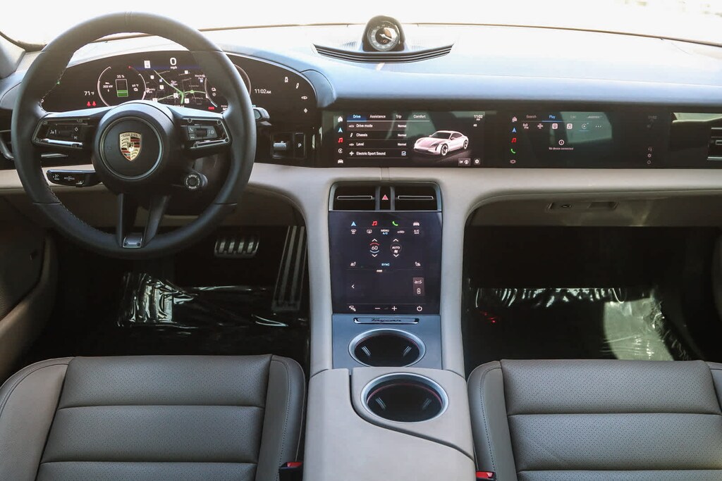 Performance Package (P4D) (Pedals in Aluminum, Porsche Torque Vectoring Plus (PTV+), and Rear Axle Steering), Sport Chrono Package, Taycan 4S, 4D Sedan, Electric Motor, 2-Speed Automatic, AWD, Frozen Berry Metallic, Black/Limestone Beige w/Leather Seat Trim w/Two-Tone Leather Interior, 10 Speakers, 8-Way Comfort Seats, 8-Way Power Driver and Passenger Seat, Adaptive Cruise Control, Adaptive suspension, Air Conditioning, Apple CarPlay & Android Auto, BOSE Surround Sound System, Brake assist, Electronic Stability Control, Exterior Parking Camera Rear, Navigation system: Porsche Communication Management (PCM), Performance Battery Plus, Power door mirrors, Radio data system, Rear side impact airbag, Remote keyless entry with push button start, Speed control, Split folding rear seat, Spoiler, and Wheels: 21 RS Spyder Design