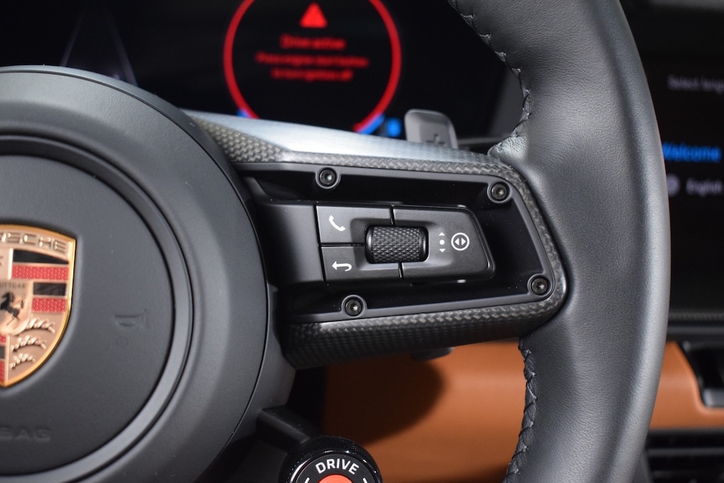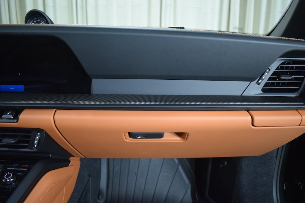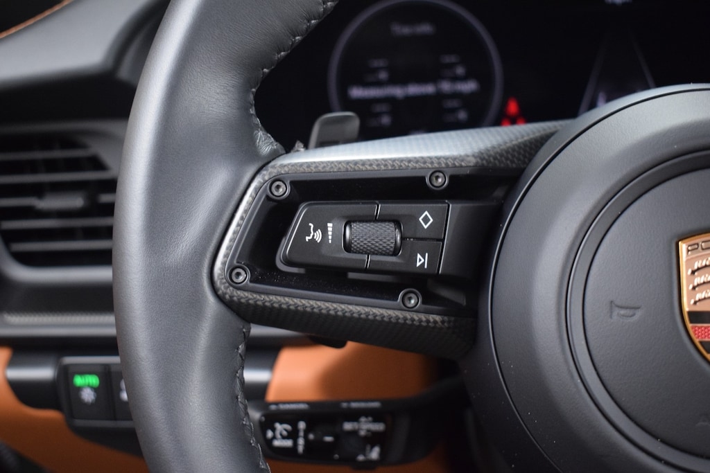 OPTIONAL EQUIPMENT INCLUDES: Club Leather Interior in Basalt Black/Classic Cognac (Semi-Aniline) / Oak Green Metallic Neo / Premium Package with Remote ParkAssist / Burmester High-End Surround Sound System / SportDesign Package in Carbon Fiber / Exclusive Design Fuel Cap / Brake Calipers in High Gloss Back / Heated GT Sport Steering Wheel in Leather with Trim in Matte Carbon Fiber / Adaptive Sport Seats Plus ( 18-Way) with Memory Package / 930 Leather Package Ventilated Seats (Front) / Porsche Crest on Headrests (Front) / Interior Trim Inlays in Matte Carbon Fiber and Trim in Black / Steering Column Casing in Leather i.c.w. Memory Package / Center Console Lid with Model Designation / Door-Sill Guards in Matte Carbon Fiber, Illuminated / HD-Matrix Design LED Headlights in Black / Exclusive Design Taillights / Under Door Puddle Light Projectors / Preparation for Porsche Dashcam (Front)