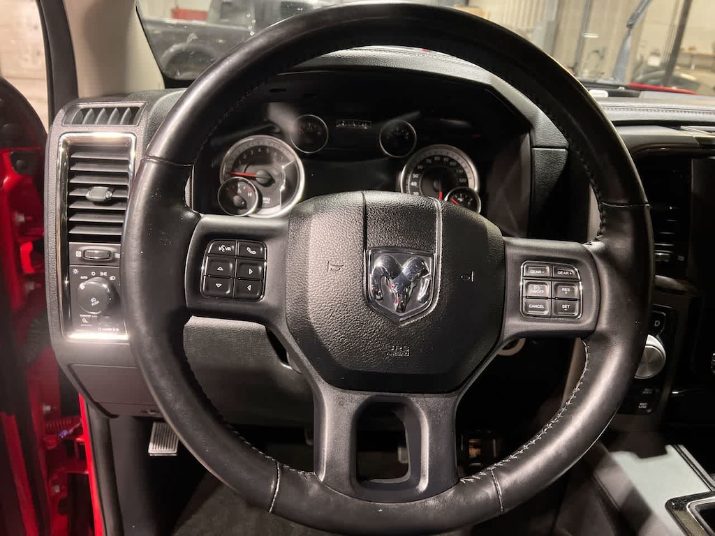 CHROME TUBULAR SIDE STEPS, SPORT PREMIUM GROUP 9 Alpine Speakers & Subwoofer, A/C w/Dual Zone Automatic Temperature Control, Humidity Sensor, REMOTE START & SECURITY GROUP Remote Start System, Security Alarm, COMFORT GROUP Heated Steering Wheel, Heated Front Seats, CLASS IV RECEIVER HITCH, TRANSMISSION: 8-SPEED TORQUEFLITE AUTOMATIC (DFK) (STD), ENGINE: 5.7L V8 HEMI MDS VVT (STD), POWER ADJUSTABLE PEDALS. Ram Sport with Flame Red exterior and Black interior features a 8 Cylinder Engine with 395 HP at 5600 RPM*.