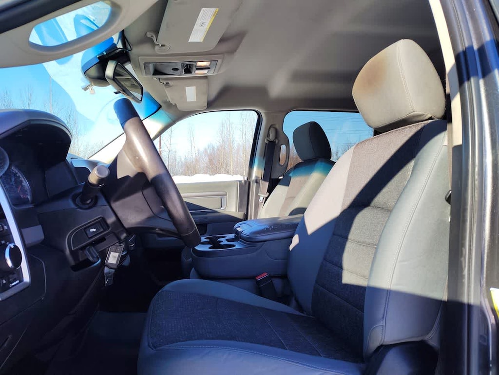 ENGINE: 6.4L V8 MID DUTY HEMI MDS 180 Amp Alternator, GVWR: 10,000 lbs, DIESEL GRAY/BLACK, PREMIUM CLOTH 40/20/40 BENCH SEAT Power Lumbar Adjust, 115V Auxiliary Power Outlet, Front Center Seat Cushion Storage, Power 10-Way Driver Seat, ANTI-SPIN DIFFERENTIAL REAR AXLE, PARKSENSE REAR PARK ASSIST SYSTEM, PARKVIEW REAR BACK-UP CAMERA, REMOTE START SYSTEM, POWER BLACK TRAILER TOW MIRRORS Exterior Mirrors w/Supplemental Signals, Exterior Mirrors Courtesy Lamps, Trailer Tow Mirrors, POWER ADJUSTABLE PEDALS, TRANSMISSION: 6-SPEED AUTOMATIC (66RFE) (STD). Ram SLT with Granite Crystal Metallic Clearcoat exterior and Diesel Gray/Black interior features a 8 Cylinder Engine with 410 HP at 5600 RPM*.