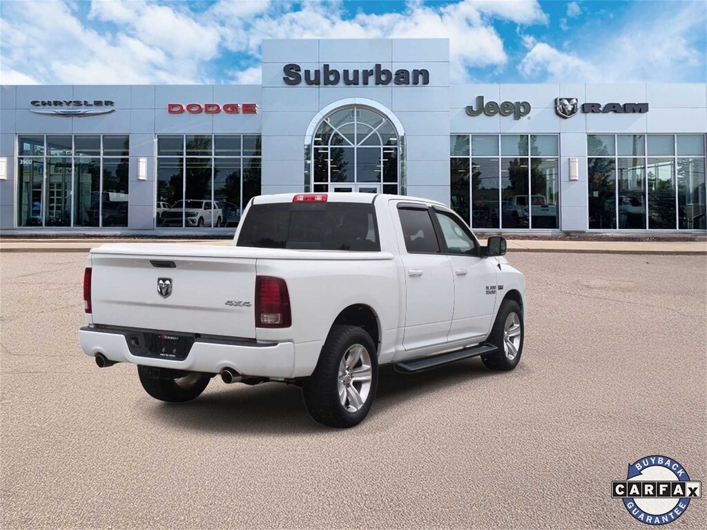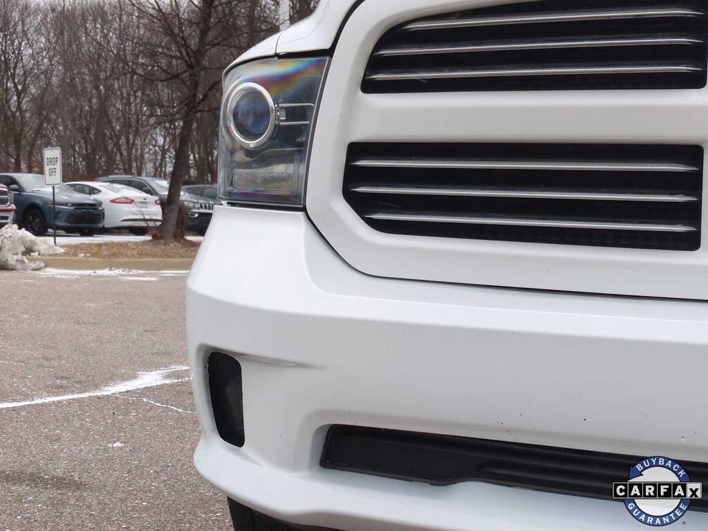 se habla Espanol! Our 2016 RAM 1500 Sport Crew Cab 4X4 struts its stuff in Bright White Clear Coat and is winning praise from drivers just like you! Powered by a 5.7 Liter HEMI V8 that offers 395hp tethered to an innovative 8 Speed Automatic transmission. With our Four Wheel Drive, we appreciate nearly 22mpg on the road and a smooth, comfortable ride with superior acceleration, as well as the ability to tow massive loads. Every time you glance at our RAM 1500 Sport, you just cant help but smile! This strong machine looks tough-as-nails with its great-looking wheels and bi-function projector black headlamps.