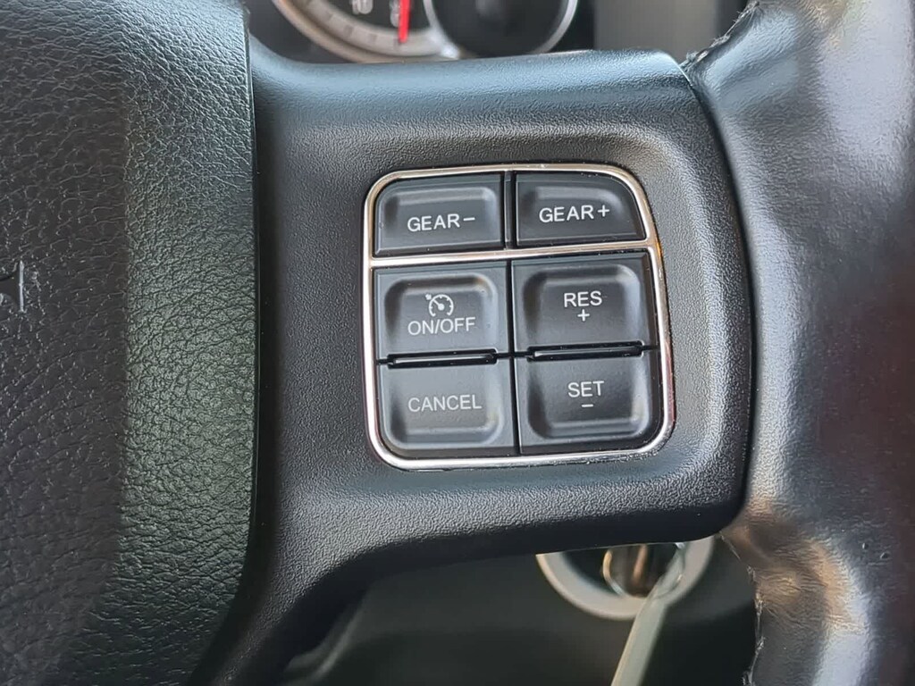 This Ram 1500 also boasts impressive utility, with a versatile 60/40 split-folding rear seat, a Class IV receiver hitch, and a spacious 26-gallon fuel tank for extended adventures. The ParkView rear backup camera and ParkSense front/rear park assist system make maneuvering a breeze, whether youre navigating tight spaces or towing a trailer.