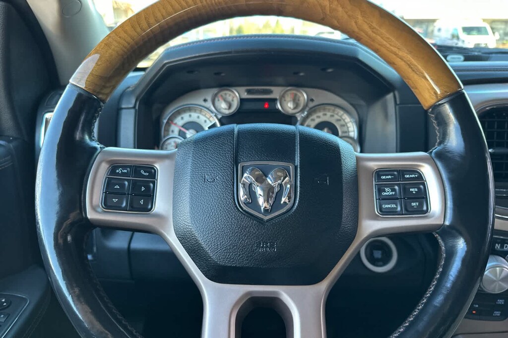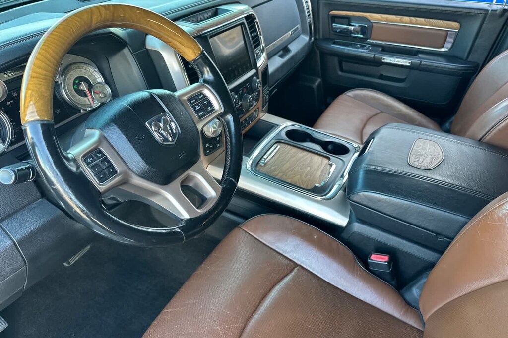 Lithia Ford and Lincoln of Fresno is pleased to offer this Brilliant Black Crystal Pearlcoat 2017 Ram 1500 Laramie Longhorn for purchase, this vehicle is well equipped with many features including: Protection Group, Quick Order Package 28K Longhorn (Chrome Belt Moldings and Chrome Grille w/RAM Letters), Trailer Tow Mirrors & Brake Group (Class IV Receiver Hitch, Power Chrome Trailer Tow Mirrors, Trailer Brake Control, and Trailer Tow Mirrors), 1 Yr. Trial (Registration Required), 10 Speakers, 115V Auxiliary Power Outlet, 20 x 9 Polished Aluminum Wheels, 4-Corner Air Suspension, 4-Wheel Disc Brakes, 8.4 Touchscreen Display, ABS brakes, Active Grille Shutters, Adjustable pedals, Air Conditioning, Alloy wheels, AM/FM radio, Anti-Spin Differential Rear Axle, Audio Jack Input for Mobile Devices, Audio memory, Auto High-beam Headlights, Auto-dimming door mirrors, Auto-dimming Rear-View mirror, Automatic temperature control, Brake assist, Bright Rotary Shifter, Bucket Seats, Center Hub, Compass, Delay-off headlights, Delete Spray In Bedliner, Driver door bin, Driver vanity mirror, Dual front impact airbags, Dual front side impact airbags, Electronic Shift, Electronic Stability Control, Electronically Controlled Throttle, Emergency communication system: Uconnect Access, Engine Oil Heat Exchanger, Folding Flat Load Floor Storage, Front anti-roll bar, Front Bucket Seats, Front Center Armrest w/Storage, Front dual zone A/C, Front fog lights, Front reading lights, Front wheel independent suspension, Fully automatic headlights, Garage door transmitter, Genuine wood dashboard insert, Genuine wood door panel insert, GPS Antenna Input, GPS Navigation, HD Radio, Heated door mirrors, Heated Front Seats, Heated front seats, Heated rear seats, Heated Second Row Seats, Heated Steering Wheel, Heated steering wheel, Heavy-Duty Engine Cooling, Hemi Badge, High Back Seats, Illuminated entry, Integrated Voice Command w/Bluetooth, Leather Shift Knob, Leather steering wheel, Low tire pressure warning, Manufacturers Statement of Origin, Media Hub (USB, AUX), Memory seat, Navigation System, Occupant sensing airbag, Outside temperature display, Overhead airbag, Overhead console, Panic alarm, ParkView Rear Back-Up Camera, Passenger door bin, Passenger vanity mirror, Pedal memory, Power 10-Way Memory Driver & 6-Way Passenger Seats, Power door mirrors, Power driver seat, Power Lumbar Adjust, Power passenger seat, Power steering, Power Sunroof, Power windows, Premium Filigree Leather Seats, Radio data system, Radio: Uconnect 3C Nav w/8.4 Display, Rain sensing wipers, Rear 60/40 Split Folding Seat, Rear anti-roll bar, Rear seat center armrest, Rear step bumper, Rear Window Defroster, Remote keyless entry, Remote USB Port, Security system, SIRIUSXM Satellite Radio, SIRIUSXM Traffic, SiriusXM Travel Link, Speed control, Split folding rear seat, Steering Wheel Mounted Audio Controls, Steering wheel mounted audio controls, Tachometer, Tilt steering wheel, Tip Start, Traction control, Trip computer, Turn signal indicator mirrors, Uconnect Access, Variably intermittent wipers, Ventilated Front Seats, Ventilated front seats, Voltmeter, Wheel to Wheel Side Steps, and Wheels: 20 x 9 Aluminum Polish/Brown Insert. 4WD EcoDiesel 3.0L V6 8-Speed Automatic Laramie Longhorn