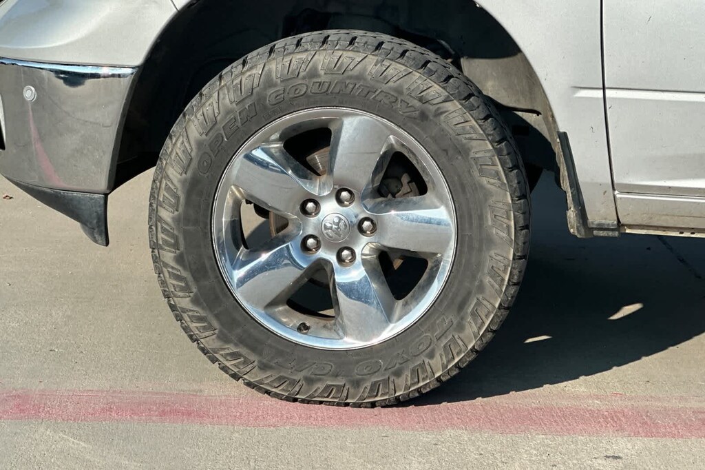 This 1500 Big Horn is finished in the Bright Silver Metallic Clearcoat exterior paint and Diesel Gray/Black Cloth interior.