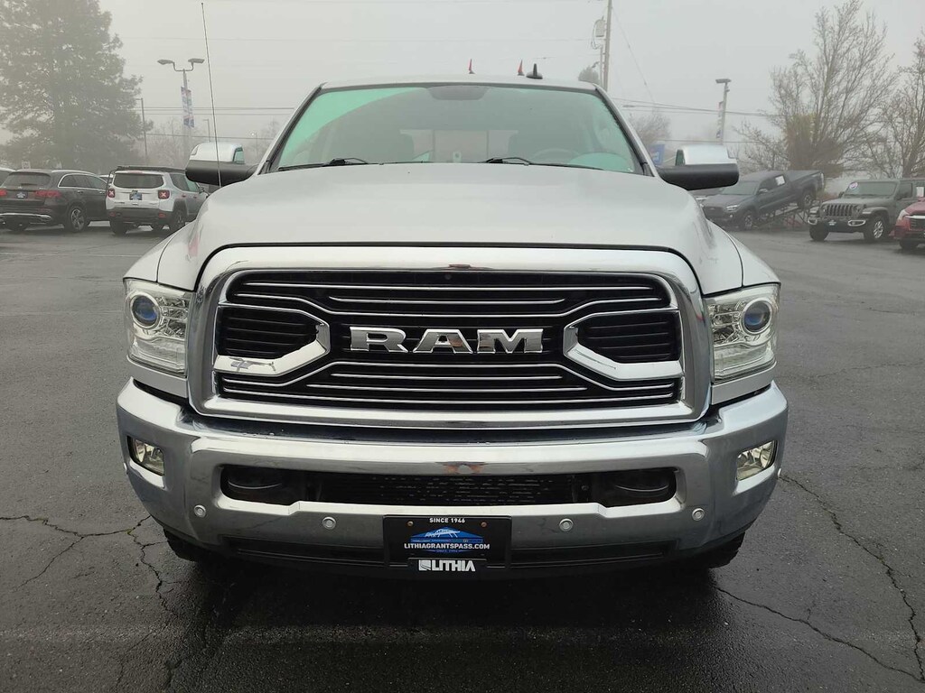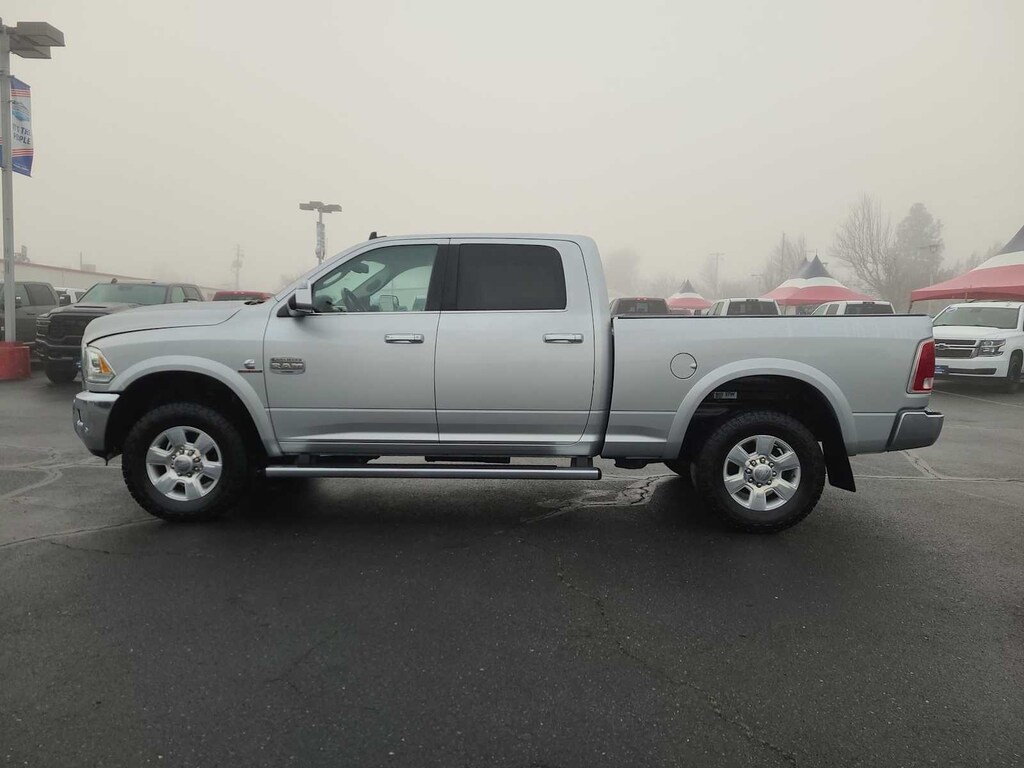 CDJR of Grants Pass CARFAX DEALER of the YEAR for 6 YEARS RUNNING is pleased to offer this Bright Silver Metallic Clearcoat 2017 Ram 2500 Laramie Longhorn with Lt Frost Beige/Brown Leather for purchase.