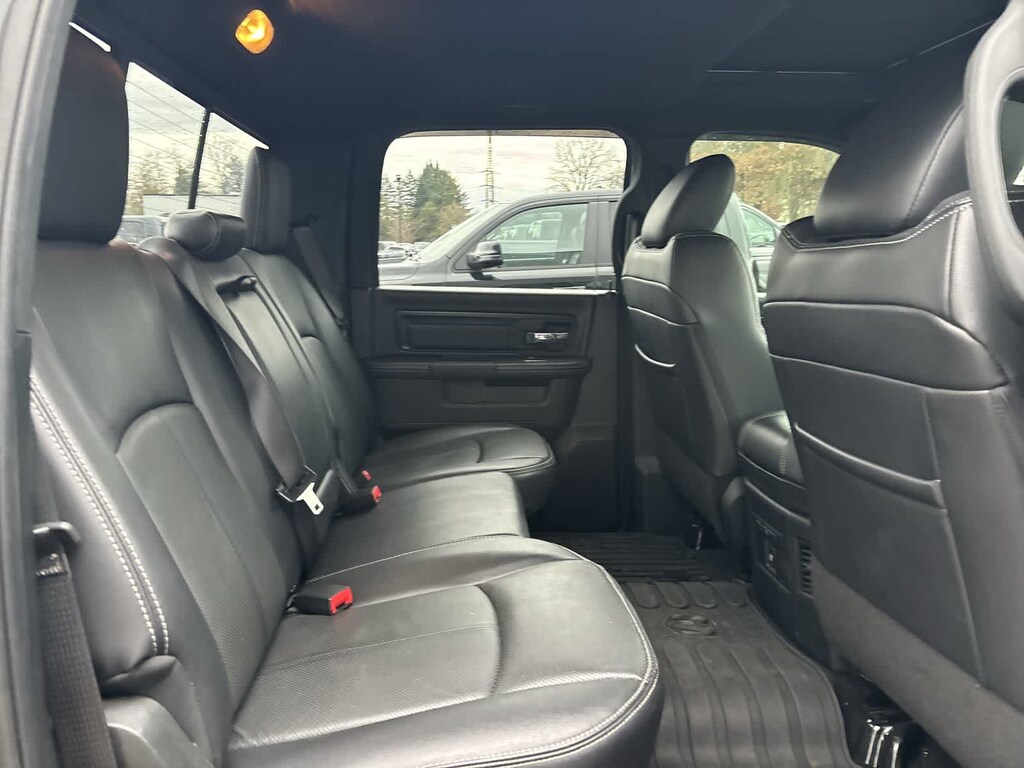 BLACK, LEATHER TRIM BUCKET SEATS W/REBEL LOGO #1 Seat Foam Cushion, ENGINE: 5.7L V8 HEMI MDS VVT Electronically Controlled Throttle, Heavy Duty Engine Cooling, Next Generation Engine Controller, Engine Oil Heat Exchanger, Hemi Badge, Heavy Duty Transmission Oil Cooler, POWER SUNROOF, RADIO: UCONNECT 4C NAV W/8.4 DISPLAY SiriusXM Traffic Plus, HD Radio, GPS Navigation, SiriusXM Travel Link, LUXURY GROUP Auto Dim Exterior Mirrors, Exterior Mirrors w/Supplemental Signals, Power-Folding Mirrors, Rear Dome w/On/Off Switch Lamp, LED Bed Lighting, Exterior Mirrors Courtesy Lamps, Glove Box Lamp, Power Heated Fold-Away Mirrors, Sun Visors w/Illuminated Vanity Mirrors, Overhead Console w/Garage Door Opener, Universal Garage Door Opener, RAM 1500 BLACK REBEL GROUP Black Powder-Coated Front Bumper, Wheels: 17 x 8 Matte Black Aluminum, TRANSMISSION: 8-SPEED AUTOMATIC (8HP70) 17 Aluminum Spare Wheel, 9 ALPINE SPEAKERS W/SUBWOOFER, Keyless GO® Remote Proximity Keyless Entry. Ram Rebel with Brilliant Black Crystal Pearlcoat exterior and Black interior features a 8 Cylinder Engine with 305 HP at 6400 RPM*.