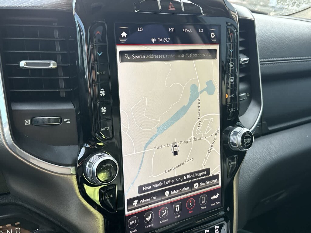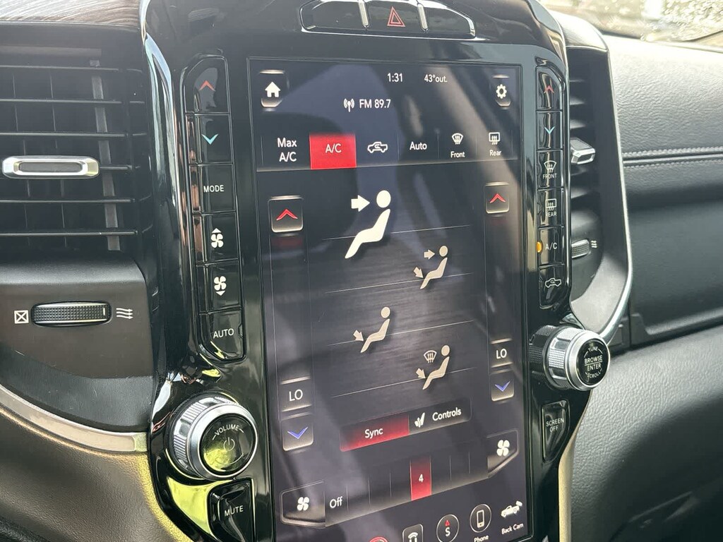 LARAMIE LEVEL 2 EQUIPMENT GROUP Blind Spot & Cross Path Detection, Rain Sensitive Windshield Wipers, ParkSense Front/Rear Park Assist w/Stop, Wireless Charging Pad, Radio: Uconnect 4C Nav w/8.4 Display, SiriusXM Traffic Plus, Disassociated Touchscreen Display, HD Radio, For Details, Visit DriveUconnect.com, 1-Yr SiriusXM Guardian Trial, GPS Navigation, SiriusXM Travel Link, No Satellite Coverage w/HI/AK/PR/VI/GU, Rear 60/40 Folding Split Recline Seat, Remote Tailgate Release, harman/kardon® 19 Speaker Premium Sound, Rear Underseat Compartment Storage, Auto High Beam Headlamp Control, Heated Second Row Seats, Tailgate Ajar Warning Lamp, Foam Bottle Insert (Door Trim Panel), Single Disc Remote CD Player, ENGINE: 5.7L V8 HEMI MDS VVT Active Noise Control System, Heavy Duty Engine Cooling, GVWR: 7,100 lbs, Dual Rear Exhaust w/Bright Tips, Hemi Badge, 220 Amp Alternator, WHEELS: 20 X 9 PREMIUM PAINT/POLISHED Tires: 275/55R20 OWL All Season, BLACK, LEATHER TRIMMED BUCKET SEATS Bucket Seats, Rear 60/40 Folding Split Recline Seat, Center Console Parts Module, Full Length Upgraded Floor Console, ANTI-SPIN DIFFERENTIAL REAR AXLE, TRANSMISSION: 8-SPEED AUTOMATIC (8HP75). Ram Laramie with Diamond Black Crystal Pearlcoat exterior and Black interior features a 8 Cylinder Engine with 305 HP at 6400 RPM*.