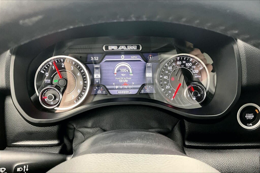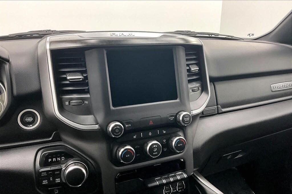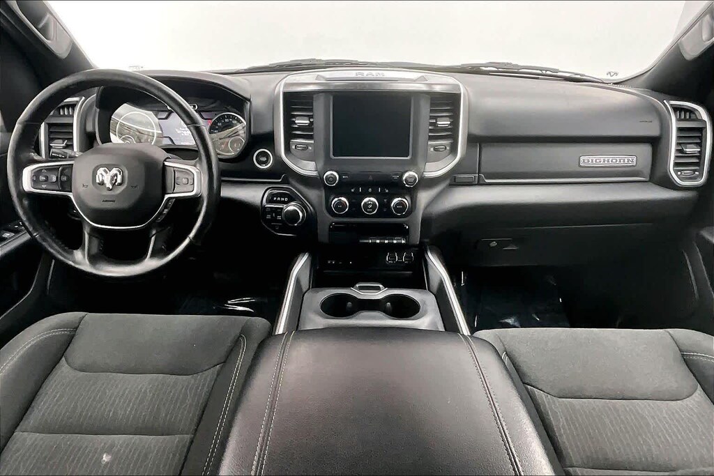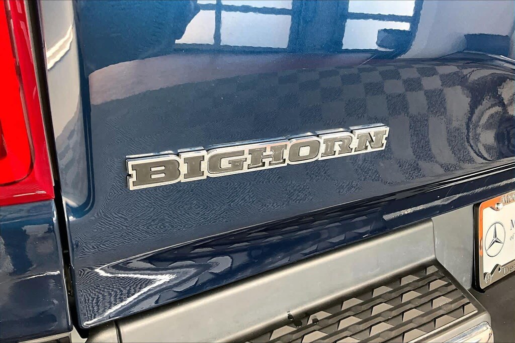Big Horn Level 2 Equipment Group (115V Auxiliary Power Outlet, 115V Auxiliary Rear Power Outlet, 2 USB Full Function/Charge Only Media Hub, 400W Inverter, 8.4 Touchscreen Display, Air Conditioning ATC w/Dual Zone Control, Auto-Dimming Rear-View Mirror, Big Horn IP Badge, Class IV Receiver Hitch, Cluster 7.0 TFT Color Display, Dampened Tailgate, Foam Bottle Insert (Door Trim Panel), Glove Box Lamp, Heated Front Seats, Heated Steering Wheel, Integrated Center Stack Radio, ParkSense Front/Rear Park Assist w/Stop, Power 4-Way Driver Lumbar Adjust, Power 8-Way Driver Seat, Power Adjustable Pedals, Power Heated Fold Away Mirrors, Radio: Uconnect 4 w/8.4 Display, Rear Dome w/On/Off Switch Lamp, Rear Power Sliding Window, Rear Window Defroster, Remote Start System, Security Alarm, Single Disc Remote CD Player, SiriusXM Satellite Radio, Sun Visors w/Illuminated Vanity Mirrors, and Universal Garage Door Opener), Quick Order Package 23Z Big Horn/Lone Star (Steering Wheel Mounted Audio Controls), Trailer Tow Group (Add Class IV Receiver Hitch, Exterior Mirrors Courtesy Lamps, Exterior Mirrors w/Supplemental Signals, Power Black Trailer Tow Mirrors, Trailer Brake Control, and Trailer Tow Mirrors), 1500 Big Horn/Lone Star, 4WD, 3 Rear Seat Head Restraints, 4 Way Front Headrests, 4-Wheel Disc Brakes, 48V Belt Starter Generator, 6 Speakers, ABS brakes, Air Conditioning, Alloy wheels, AM/FM radio, Brake assist, Bumpers: chrome, Cloth Bench Seat, Compass, Delay-off headlights, Driver door bin, Dual front impact airbags, Dual front side impact airbags, Electronic Stability Control, Front & Rear Rubber Floor Mats, Front anti-roll bar, Front Center Armrest w/Storage, Front fog lights, Front reading lights, Front Seat Back Map Pockets, Front wheel independent suspension, Fully automatic headlights, GPS Antenna Input, Heated door mirrors, Illuminated entry, Leather steering wheel, Low tire pressure warning, Occupant sensing airbag, Outside temperature display, Overhead airbag, Overhead console, Panic alarm, ParkView Rear Back-Up Camera, Passenger door bin, Passenger vanity mirror, Power door mirrors, Power steering, Power windows, Radio data system, Radio: Uconnect 3 w/5 Display, Rear 60/40 Folding Seat, Rear anti-roll bar, Rear seat center armrest, Rear step bumper, Rear Wheelhouse Liners, Remote keyless entry, Speed control, Split folding rear seat, Tachometer, Telescoping steering wheel, Tilt steering wheel, Traction control, Trip computer, Variably intermittent wipers, Voltmeter, Wheel to Wheel Side Steps, Wheels: 18 x 8, and Wheels: 20 x 9 Aluminum Chrome Clad. 1500 Big Horn/Lone Star, 4WD, 115V Auxiliary Power Outlet, 115V Auxiliary Rear Power Outlet, 2 USB Full Function/Charge Only Media Hub, 400W Inverter, 8.4 Touchscreen Display, Add Class IV Receiver Hitch, Air Conditioning ATC w/Dual Zone Control, Auto-Dimming Rear-View Mirror, Big Horn IP Badge, Big Horn Level 2 Equipment Group, Class IV Receiver Hitch, Cluster 7.0 TFT Color Display, Dampened Tailgate, Exterior